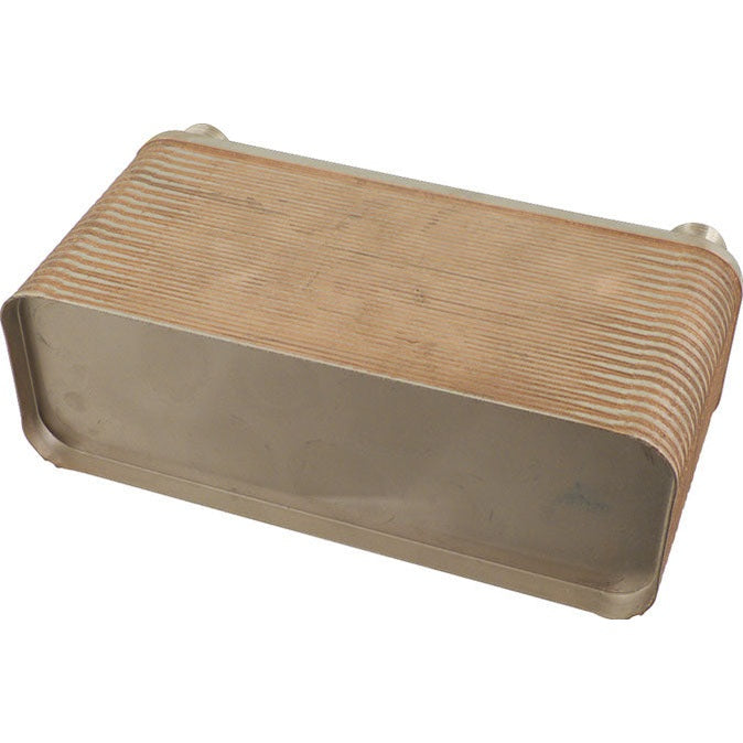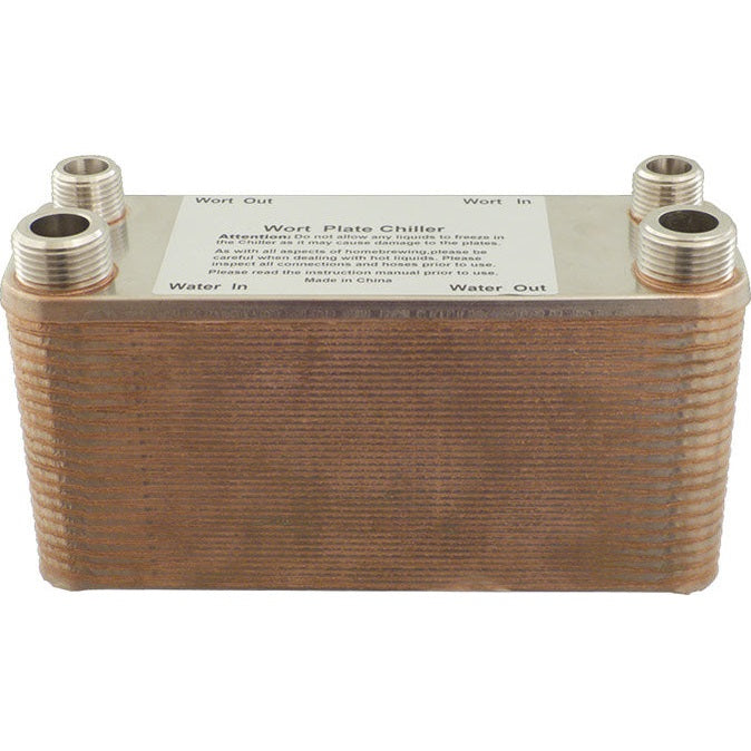 Equipped with a 1/2" MPT wort inlet and outlet to match up to the most common size of home brewery hoses, as well as a 3/4" male garden hose thread water inlet and outlet for easy connection to garden hose fittings. It measures approximately 8.25 inches long, 4 inches high and 3 inches wide.