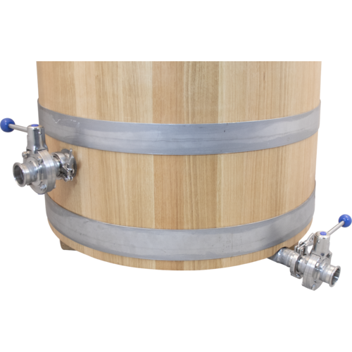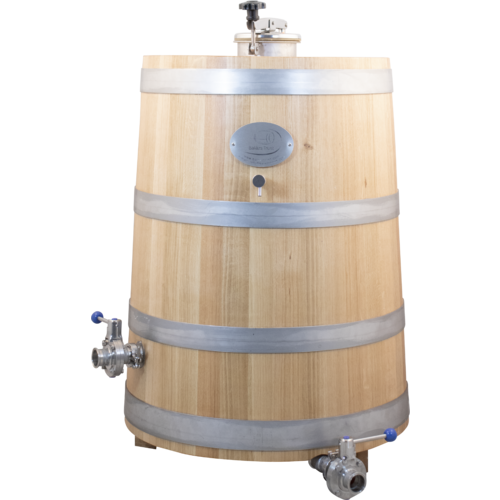 This model stand vertically, which compared to horizontal foeders, takes up a much smaller footprint in your brewery or winery. The longer, skinnier design also allows for a higher wood surface to beverage ratio. The oak is porous, so it will retain the character and living microbes of previous batches. Many sour beer producers choose to let the oak inoculate the next batch and treat the barrel as a living entity. We hope that you choose to give this vessel a loving home, with kids and a backyard, or maybe just a temperate, moderately humid production facility.
