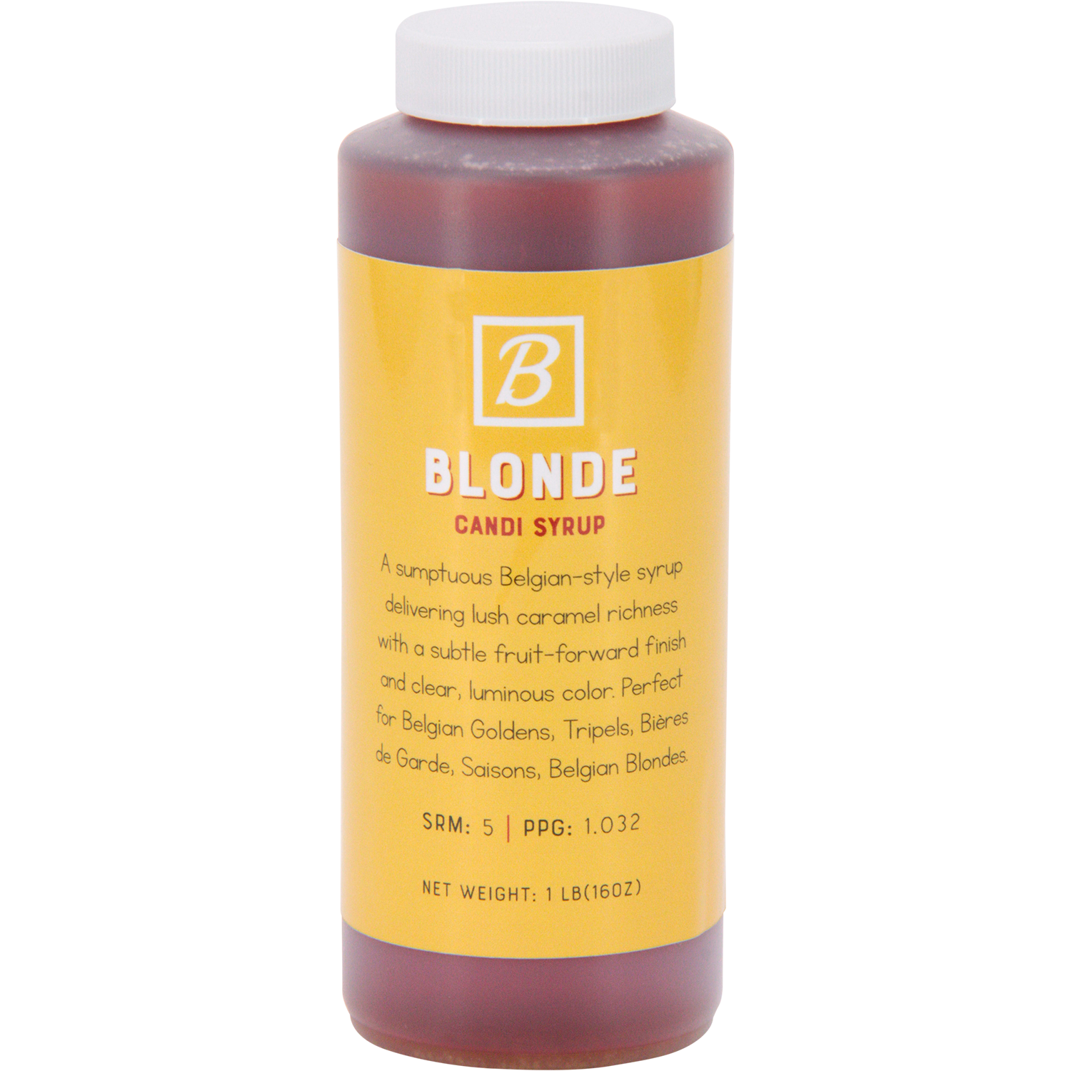Blonde is a decadent Belgian-style Candi Syrup that contributes rich caramel flavors followed by a subtle fruit back-palate. Blonde is ideal for making award-winning Belgian Golden Ales, Tripels, Bier de Garde, Saison, Belgian Blonde, and all lighter Belgian Ales.