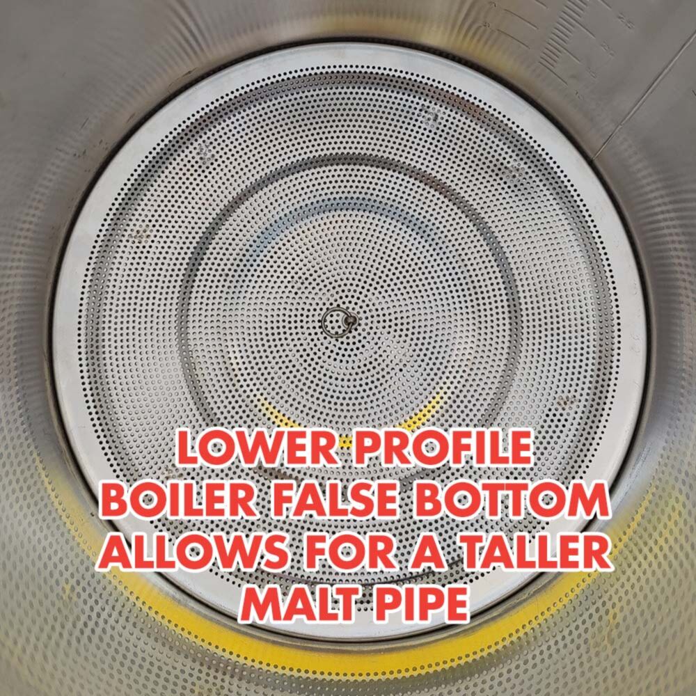 Perforated bottom on the newly designed malt pipe allows for improved mash recirculation flow without sacrificing efficiency