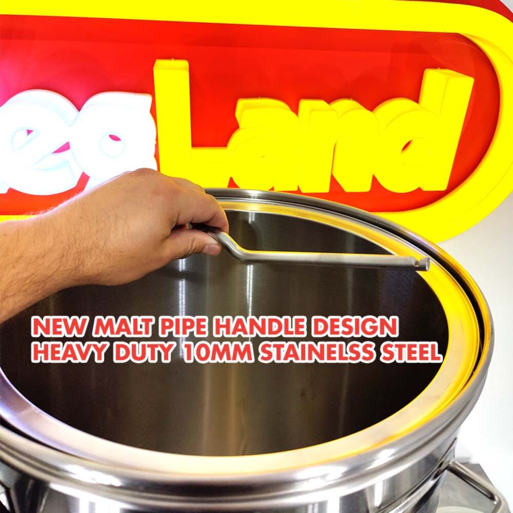 Please note: due to patent restrictions in the United States, the malt pipe has been redesigned with one set of bottom feet. This model does not include the "two stage" malt pipe as advertised by KegLand and featured in previous MoreBeer! YouTube videos.