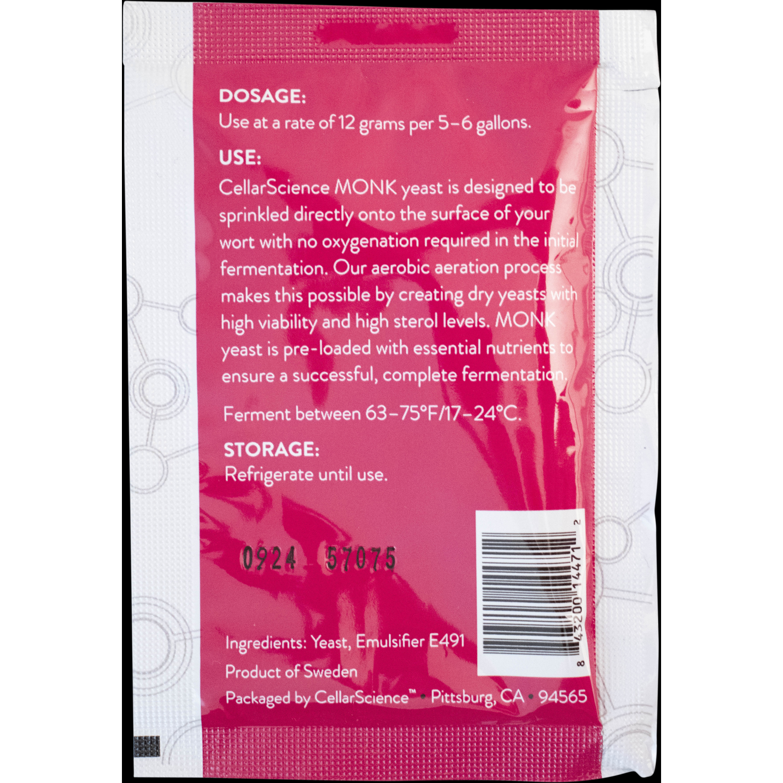 A classic Belgian ale strain renowned for producing clean, yet complex, beers. Perfect for Belgian-style Blondes and Pales or Abbey-style Dubbels, Trippels, and Quads. A clean strain that will still impart some delicate dried fruit notes and restrained phenolics. Like all CellarScience yeast, MONK is eligible for direct pitch straight into your wort. CellarScience provides 12g of yeast per sachet, which is up to 9% more than any other brand of dry yeast. Every batch of yeast is PCR tested to ensure quality.
