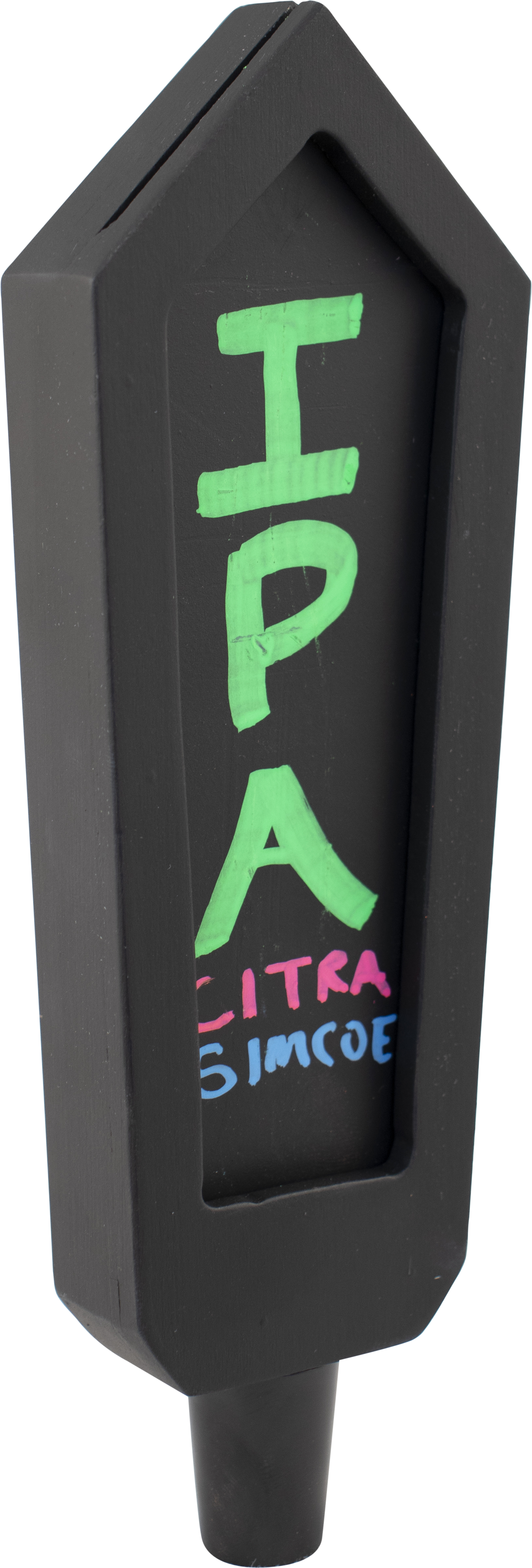 These tap handles come with a removable, erasable chalkboard surface. Additionally, the back of the tap handle features a chalkboard surface that can be written on as well, which is handy and cool if your tap handle is seen from both sides. The insert is made of a thin sheet of metal and coated with chalkboard paint. The outer portion of the tap handle is made of wood and also painted with chalkboard paint.