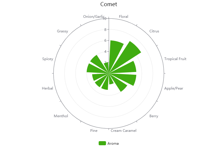 An interesting bittering hop which is making a comeback. Comet has a blend of both grassy "Wild" aromas, and a zesty grapefruit character. While generally used for bittering, the flavor and aroma of this hop definitely justify experimenting with late additions.