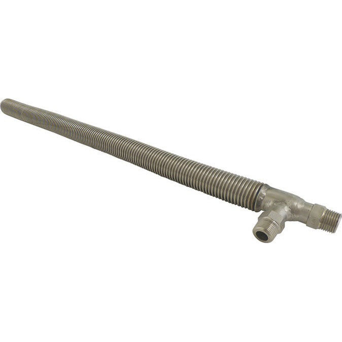 How it works: This tube-within-a-tube snake is used to recirculate glycol or cooled/heated water through your wine to regulated temperatures. The inner vinyl tube runs through the middle of the corrugated stainless tubing, but is shorter than the stainless tubing. Glycol can run through one tube and back through the other, completing the loop.