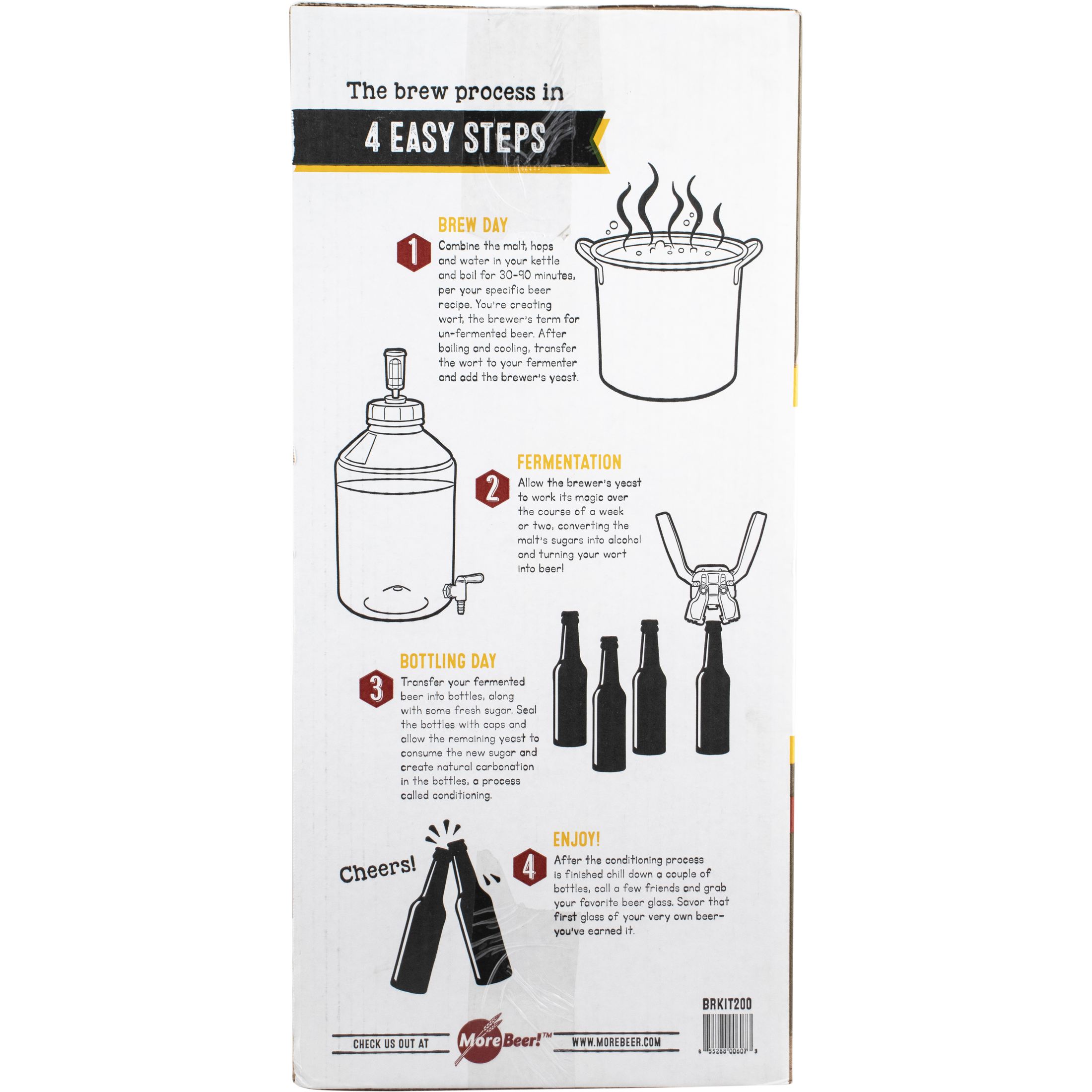 This kit includes everything you need to start brewing amazing beer at home, all in one easy to wrap box. With our simple to follow step-by-step instructions and included choice of a delicious recipe kit, you will be brewing up your first batch of beer in no time at all. Don't settle for less when picking your homebrewing kit, pick MoreBeer! because we give you More!
