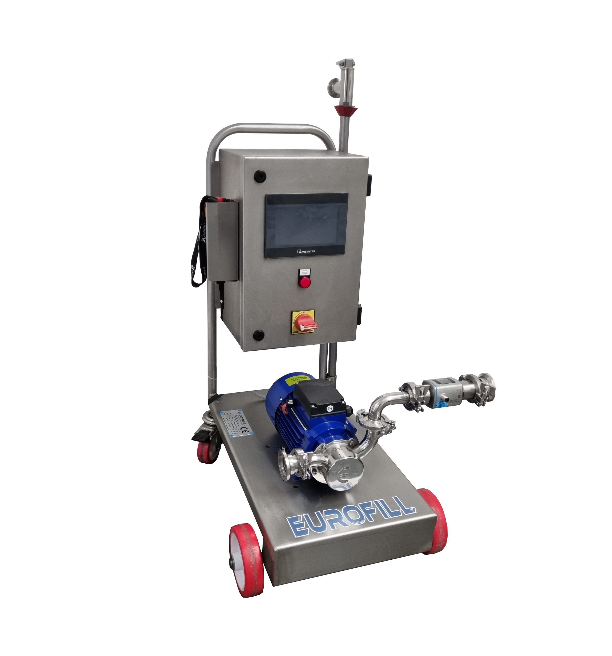 Combines all the benefits and advantages of our best-selling rubber impeller Enoitalia Euro Pumps with inline volume measurement. This is a pump with a brain! Enter in the volume of wine you would like to pump and the EuroFill turns off when that volume has been pumped. With a built-in flow meter, PLC (programmable logic controller) and a touch screen this pump will reduce human error and make your cellar life a lot easier. Filling barrels, blending exact volumes of wine, and dosing larger tanks with specialized ingredients are a few of the most useful applications. You can also control pumping by time which can be useful for pump overs and cleaning solutions.