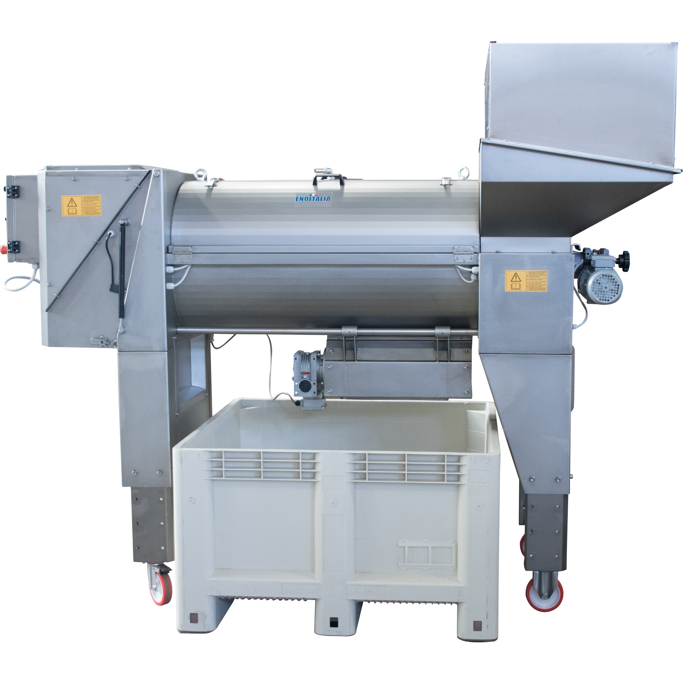EnoItalia's newest destemmer, the Jolly 100 Reverse is the ideal processing unit for smaller wineries looking for top-quality processing at an affordable price. The loading hopper features a mechanical speed variable motor so you can control the flow of grape bunches into the destemming chamber. The destemming bar and basket are separately controlled by a variable frequency drive that allows you to turn a dial to set the right speed. Separate control of these processes allows you to find the balance between speed and quality and helps the machine from being overloaded at either stage.