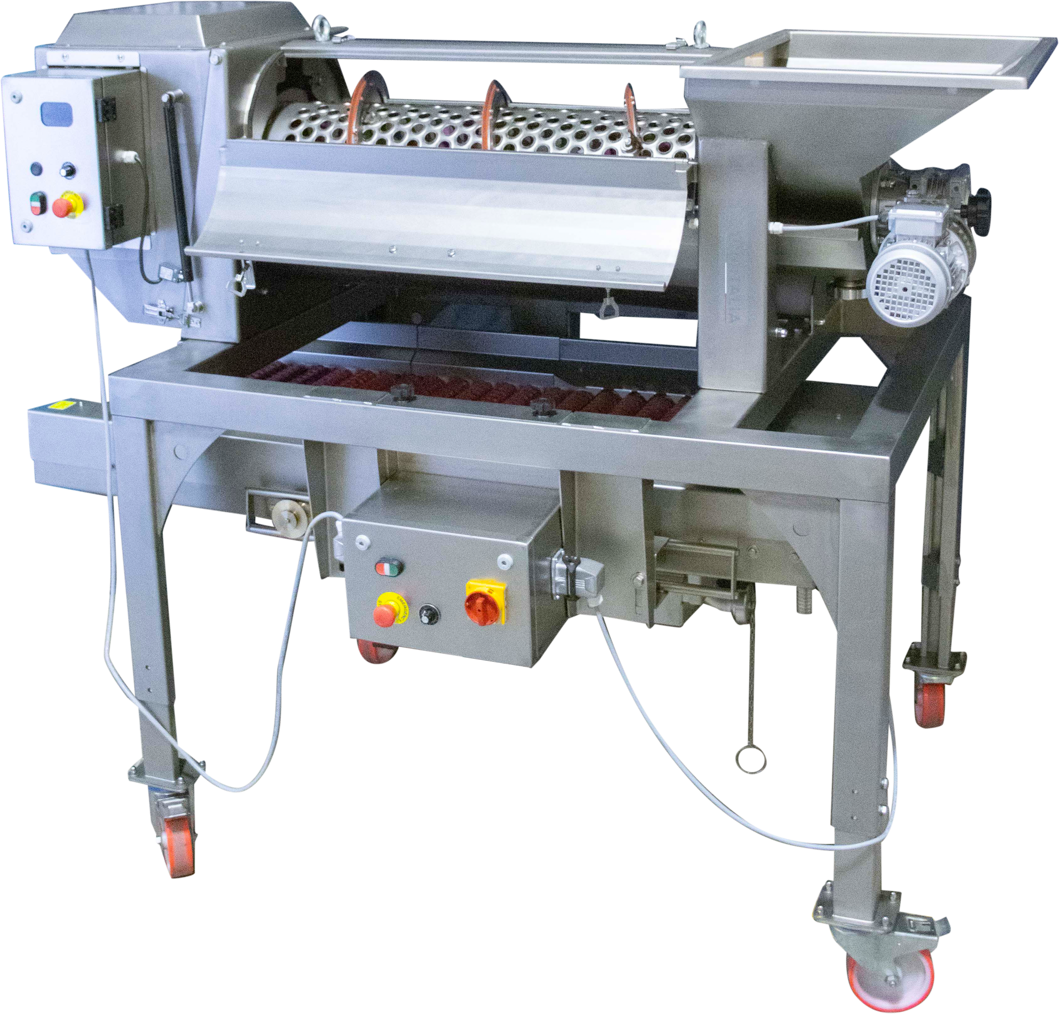 A great innovation in sorting is the new RBS 60 sorting table, which features adjustable speed and motorized rollers with adjustable gap settings. The idea is that whole berries fall from the Jolly 60 after destemming onto the sorting table. Those berries fall through gaps in the specially designed rollers into either your macrobin or a receiving hopper and must pump. Leaves and pieces of stem, that normally make it into your fermenation tank, are caught on the fingers of the rollers and shot off the end of the table into a garbage bin. The end result is similar to using a vibrating sorting table but the benefit is that the sorting is automatic instead of needing 2-4 people working the vibrating sorting table at all times. If you prefer a vibrating sorting table Enoitalia does make one and we are happy to prepare a custom quote.