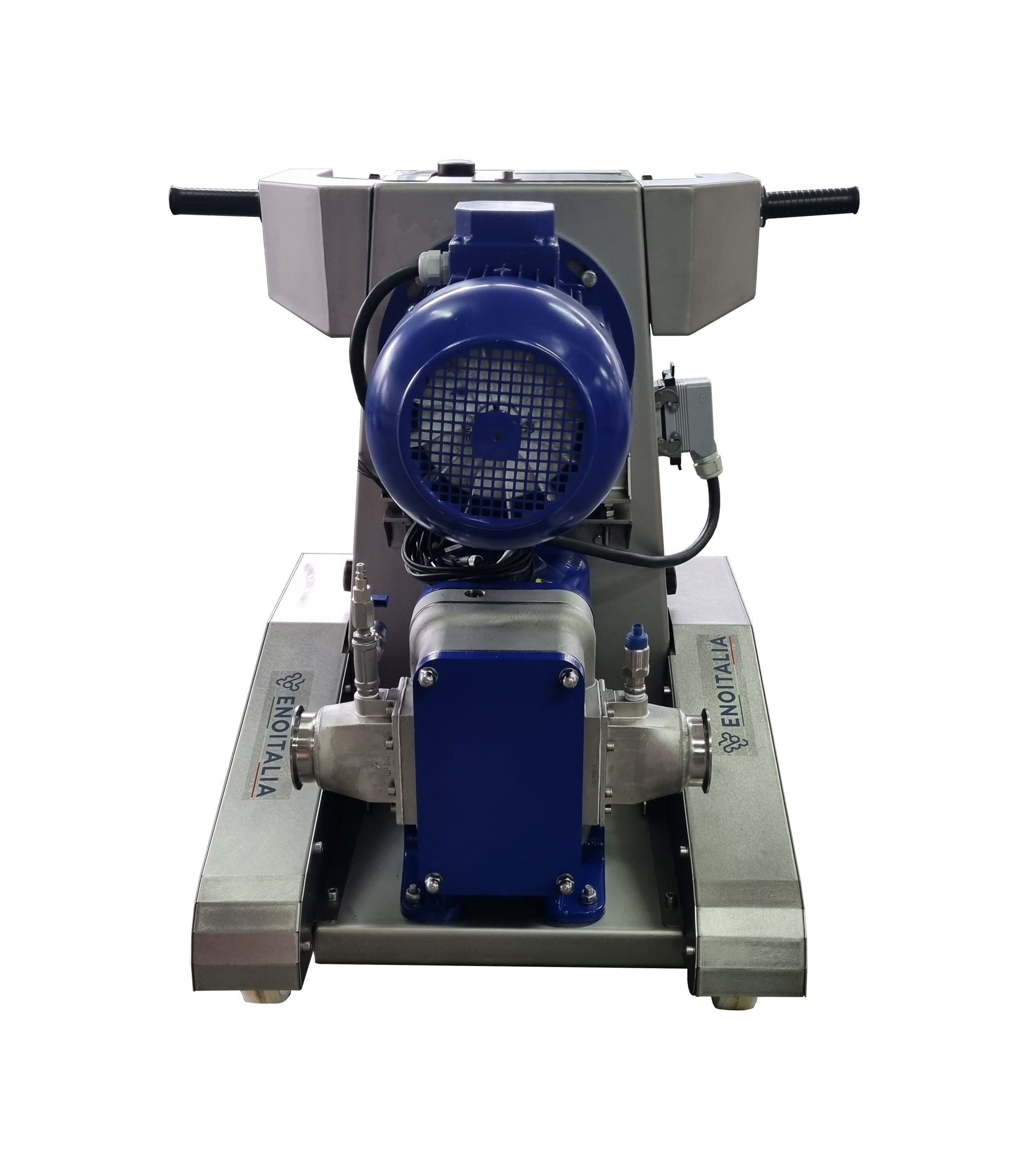 Description All the programmable benefits of the EuroFill pumps Perfectly machined stainless steel lobe rotors Ideal for pushing wine through plate and frame, lenticular, and/or cartridge filters Dry stop protection Wireless remote Available with optional motorized receiving hopper The ultimate one winery pump for all applications The Lobe Rotor pump from EnoItalia is the ultimate winery pump, representing the best of all worlds. Combines all the major benefits of the EuroFill pump, via the programmable PLC, with all the benefits of a Lobe Rotor pump. Lobe Rotor pumps can also be used for filtering applications where positive pressure is necessary to pump wine through a sheet or membrane. Lobe Rotor pumps also have some of the lowest shear values which protects skins and seeds from being macerated during the pumping process.