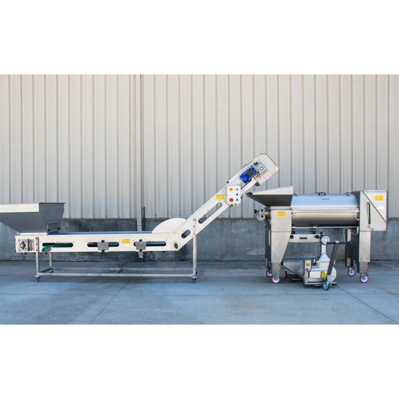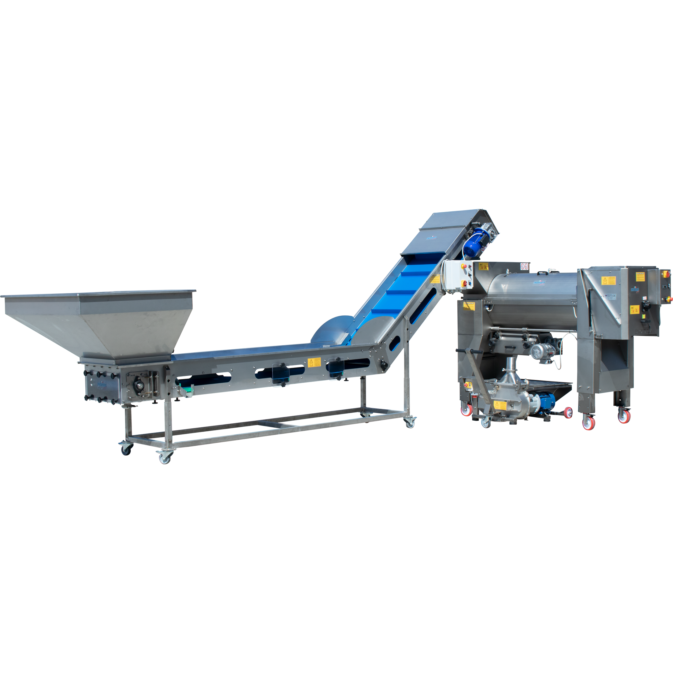 EnoItalia's top of the line Centrifugal Destemmer Crusher gives you the highest level of control when processing your grapes. It comes with three independent motors allowing you to dial in the perfect speed for your grapes. The loading hopper features mechanically varied motor that allows you to adjust the speed the grapes are being fed into the destemming chamber. The destemming basket and shaft are controlled by frequency drive which allows for the use of potentiometer to electrically control the speed. The rubber rollers are driven by an independant set speed motor and can be adjusted to change the gap, or even removed, if you desire destemmed whole grapes. Independant control of each process allows you to find the balance between speed and quality and helps the machine from being overloaded at any one of the stages.
