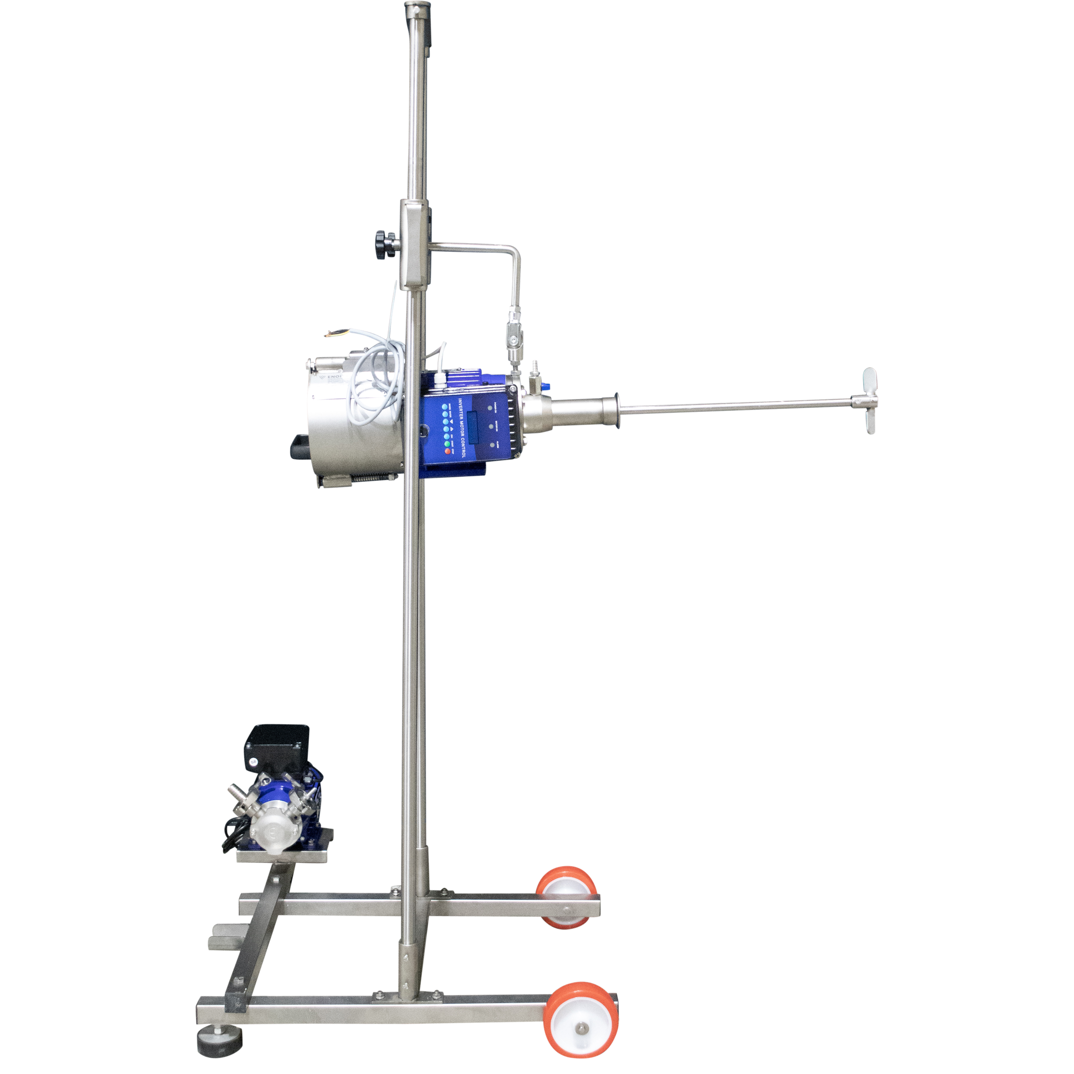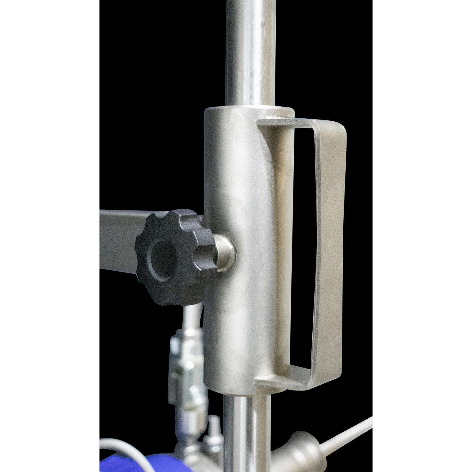 Gently mix yeast, sulphite, and additives into your wine with this variable speed mixer. The stainless cart allows you to move the mixer up and down to the height of your tank fitting. Also adjust the angle of the mixer to accomodate inclined, reinforced mixing ports, like on our Speidel Stainless tanks.