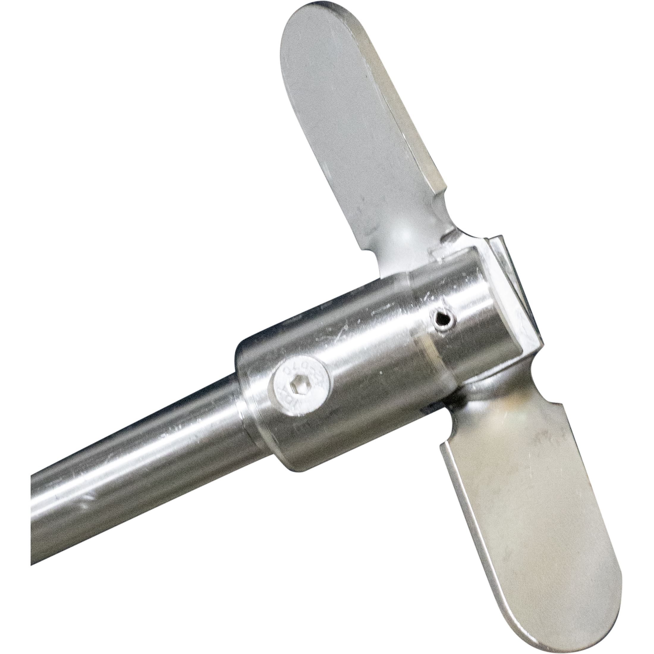 Mixing ports enter through full port 2" TC ball valves to allow for an easily installation and disassembly. Position and attach the mixer to your 2" TC ball valve. Open the valve and slide in the adjustable mixing shaft, lock the shaft in position, and turn on. Adjust the speed to accomodate your desired level of agitation. To remove unlock shaft, slide out, turn off TC ball valve, and then disconnect mixer from TC ball valve.