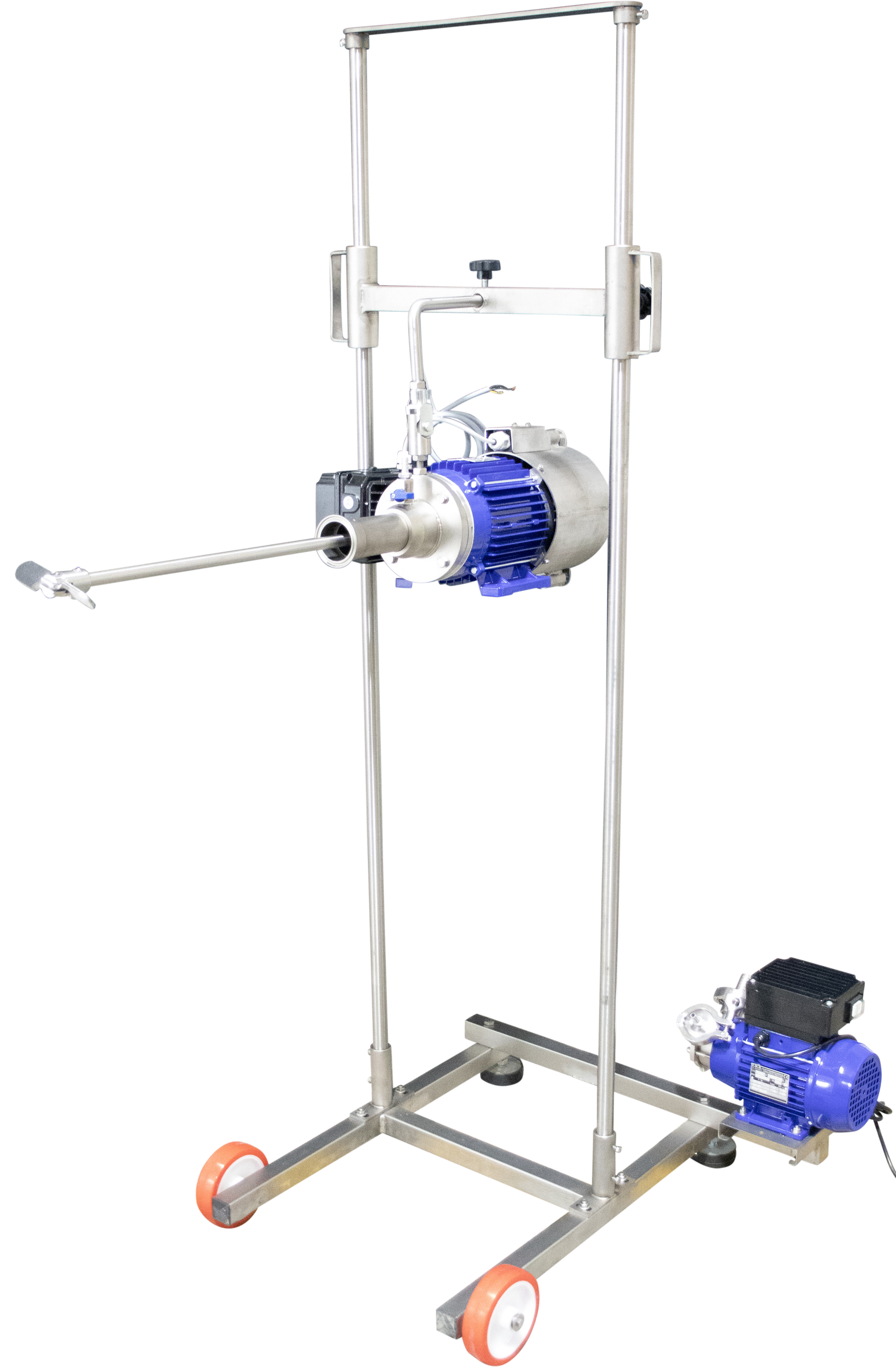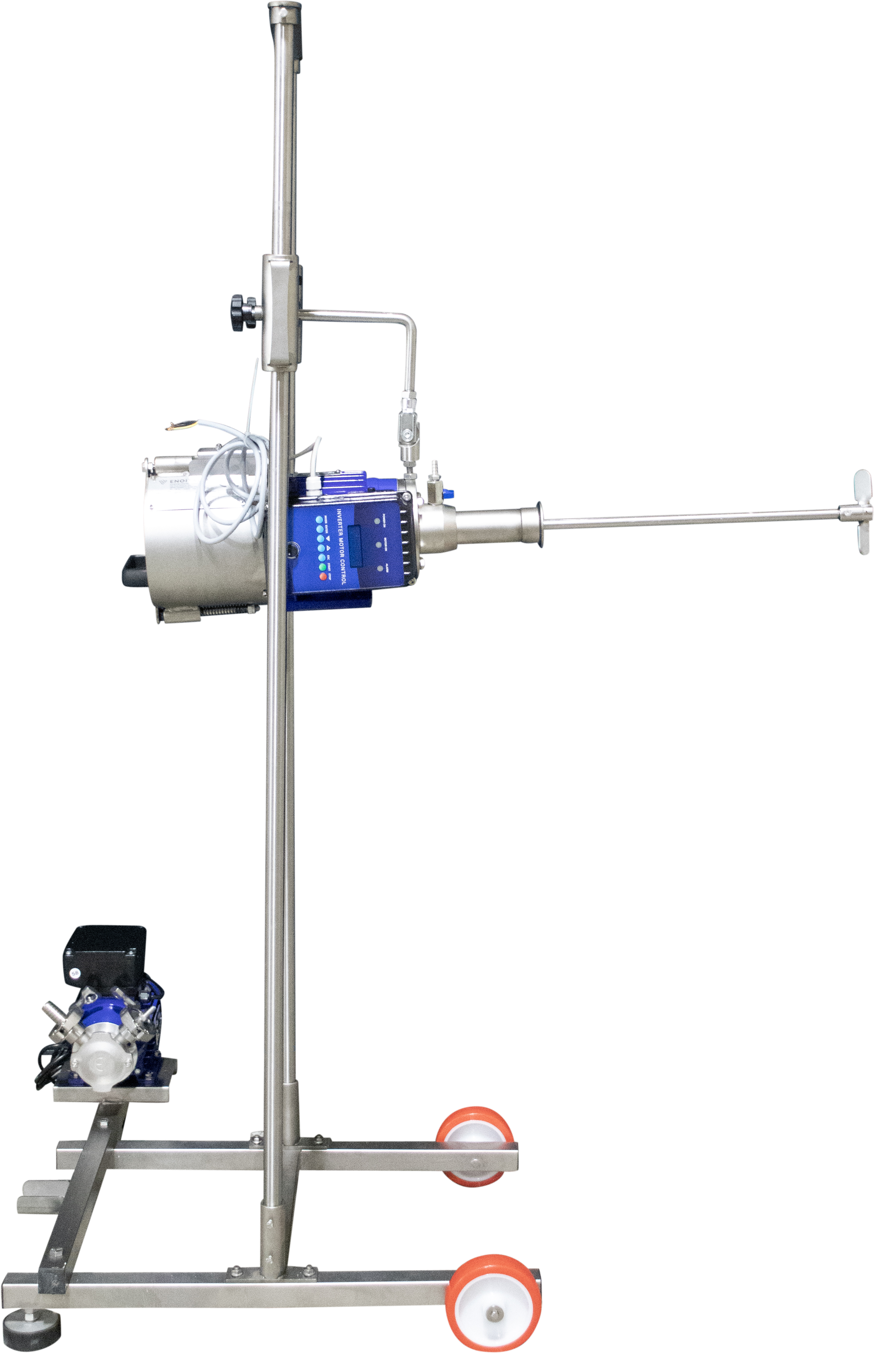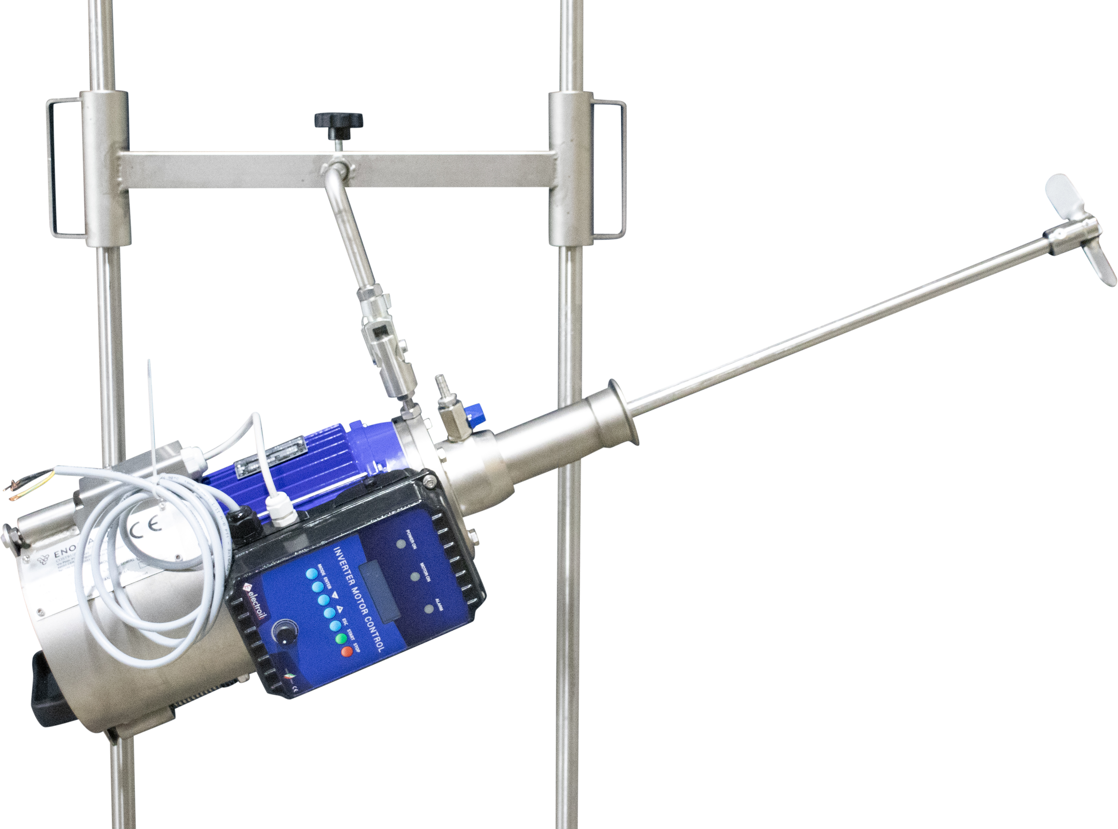 Gently mix yeast, sulphite, and additives into your wine with this variable speed mixer. The stainless cart allows you to move the mixer up and down to the height of your tank fitting. Also adjust the angle of the mixer to accomodate inclined, reinforced mixing ports, like on our Speidel Stainless tanks.