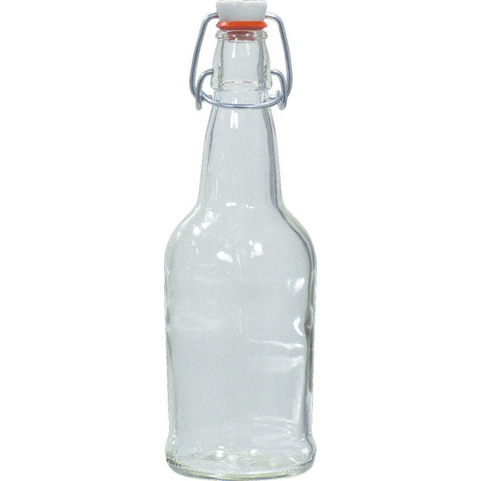 Case of 12 x 16 oz Flint (Clear) EZ Cap Bottles and 12 Swing Tops. Crown Caps not included (see recommended items below for options).