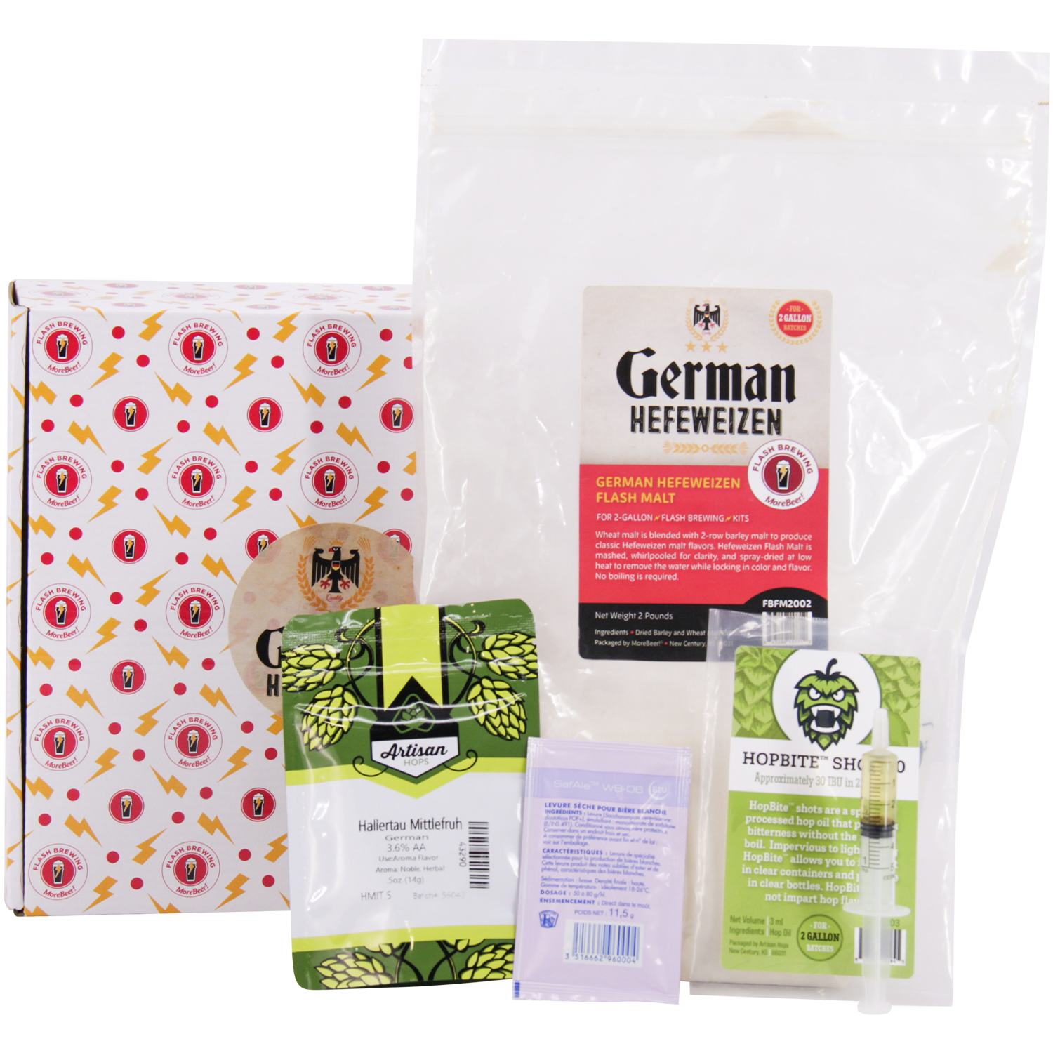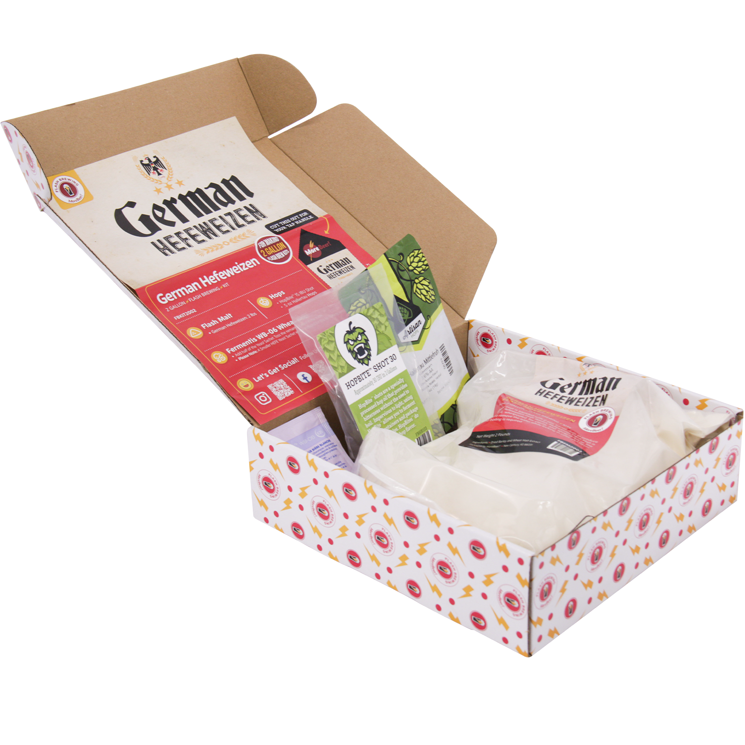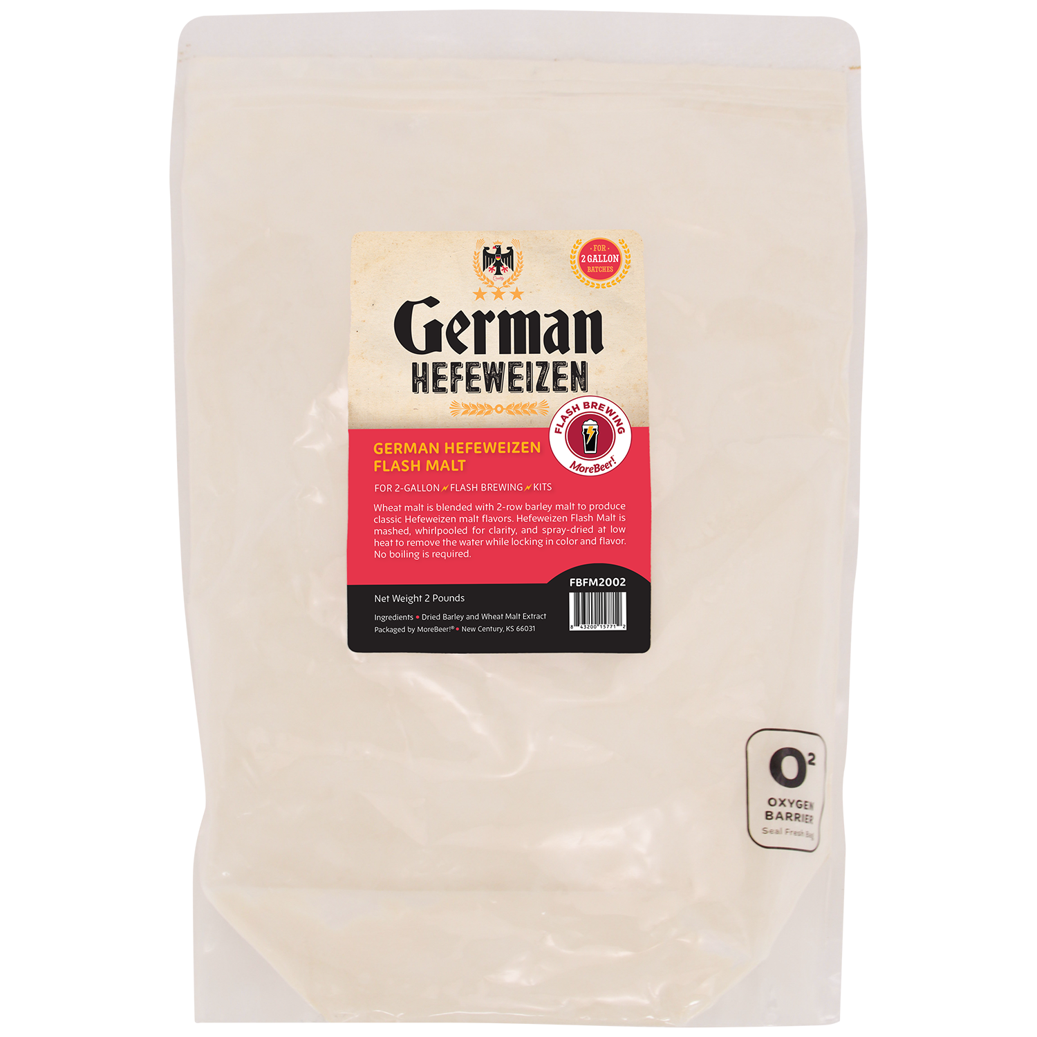 This German-style Wheat Beer has a lovely blond color and a distinctly hazy appearance in the glass. Using 100% Bavarian Wheat malt extract and a dash of German Hallertauer hops provides just enough bitterness and hop flavor to balance the malt and yeast character. Our German Hefeweizen is a customer favorite!