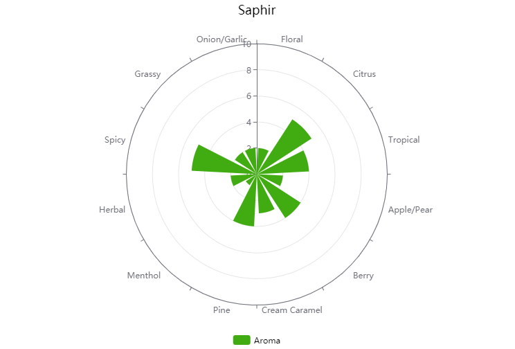 Released in 2002, this German hop has one of the lowest alpha acid contents in the world so it is always used as an aroma hop. It has a citrus and tangerine aroma with a hint of spice. Saphir works great in Belgian Ales, Wheats, and Witbiers.