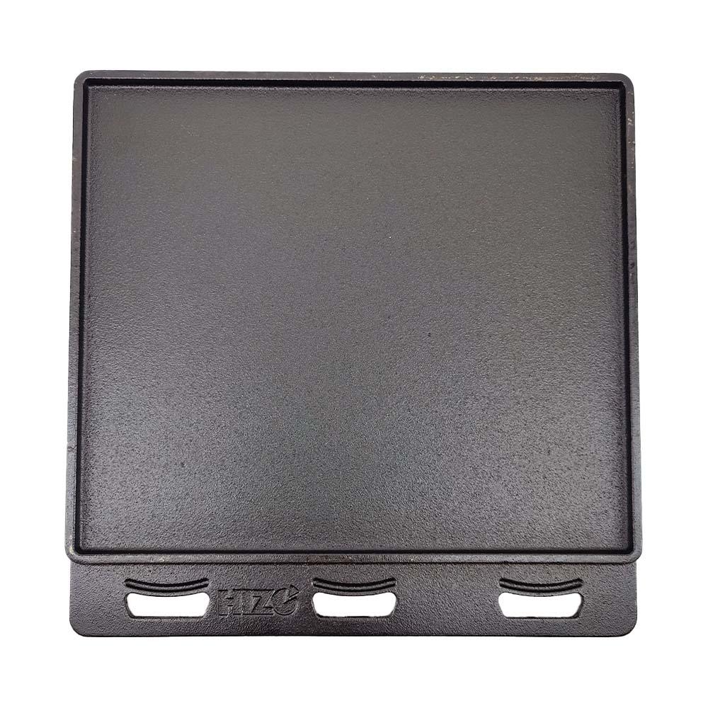 Perfect for the HIZO G14 Pizza Oven or your backyard grill, the double-sided griddle and flat skillet plate is the heavy-duty heat-retention cooking utensil you need in your arsenal. Weighing in at a whopping 9 lbs, this thick cast iron plate can really hold the heat! The HIZO double-sided skillet has a flat, smooth griddle side, and raised grill grooves for the other side. Both sides have a raised lip to handle some juices and oil to fry in. It can be moved around easily by the two removable handles in three location points on the plate.