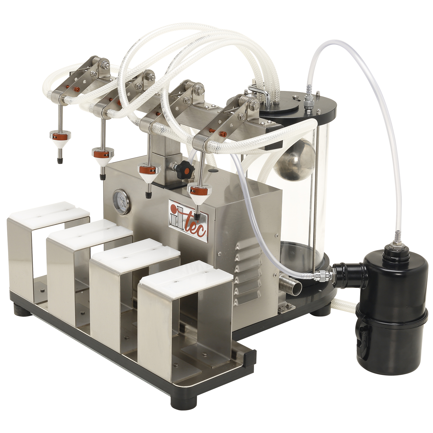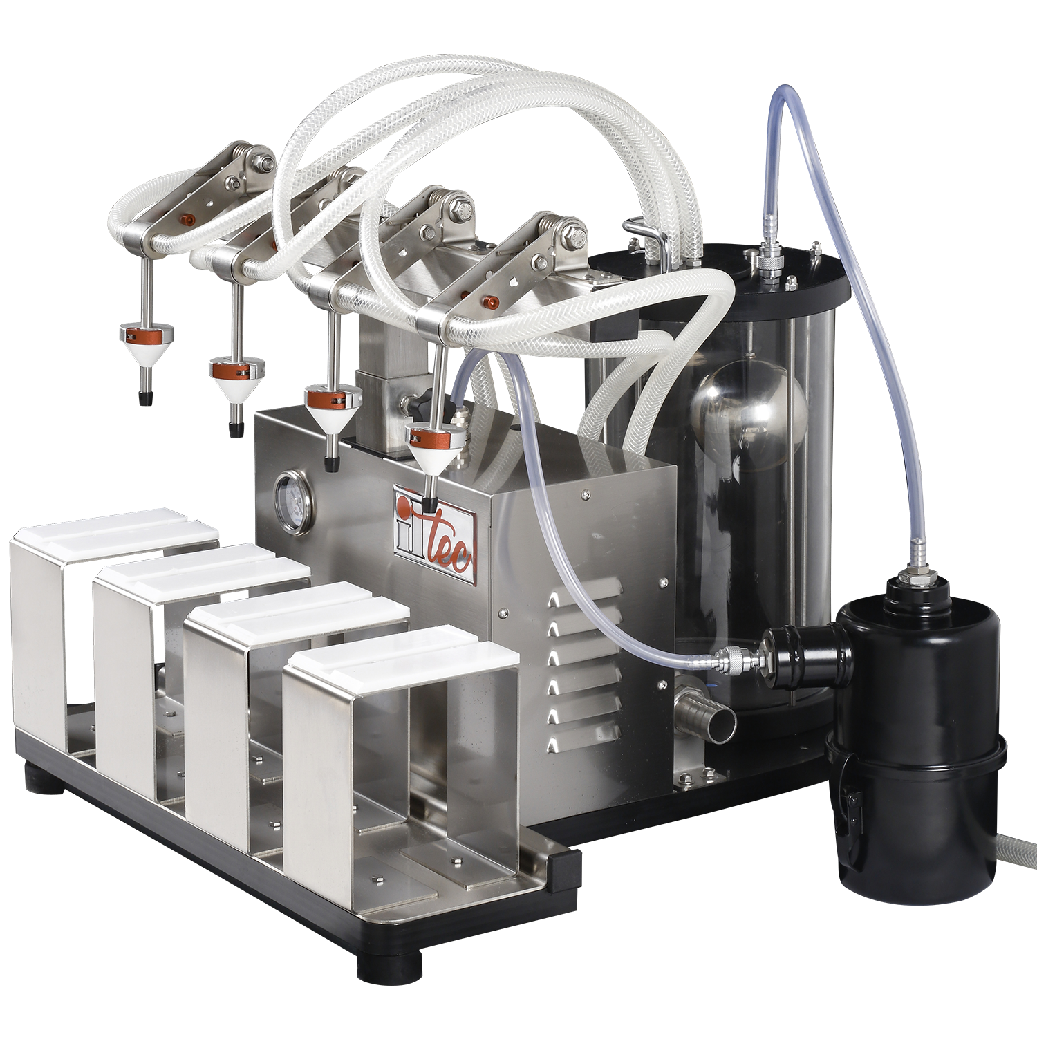 When using the Ultrafiller to fill liqueurs, spirits, syrups, or other sugary products—as well as hot products such as juices—it is essential to equip the machine with the oil bath filter. This filter protects the vacuum pump, which could fail over time without proper filtration. Please note that the oil bath filter is not included with the Ultrafiller and must be purchased separately.