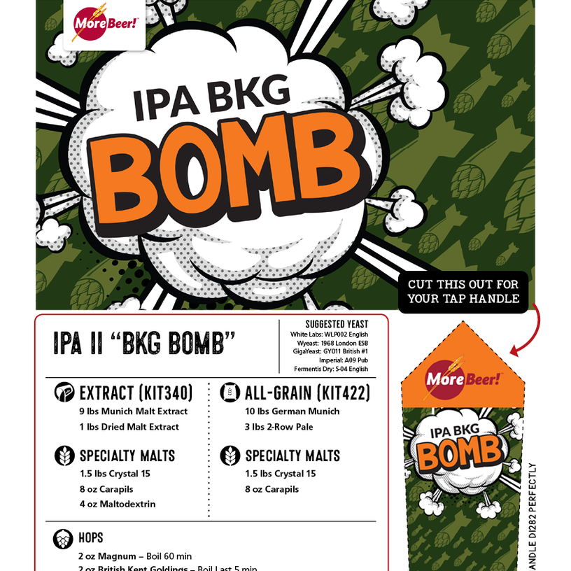 Where do German Malts and English Hops exist side by side in peace and unlikely harmony. In our BKG Bomb of an IPA! This big brusing beer, with an amazing mouth feel from copius amounts of Munich Malt Extract, is big on deep malt flavor and big on alcohol. It is the antithesis of todays super citrusy hopped, pale colored IPAs. This is all about malt, malt, malt and how British Kent Goldings (BKG) hops blend oh so well with a malt heavy beer. British Kent Goldings are the most prized ale hops in England and known for their subtle nature and floral aromas that really compliment malt flavors. Do you need a little extra sustenance to make it through the winter? Do you like to slice your beer with a knife? Do you need a break from over-the-top hopped IPA's? If you answered yes to any of these questions, The BKG Bomb IPA II should be your next beer.