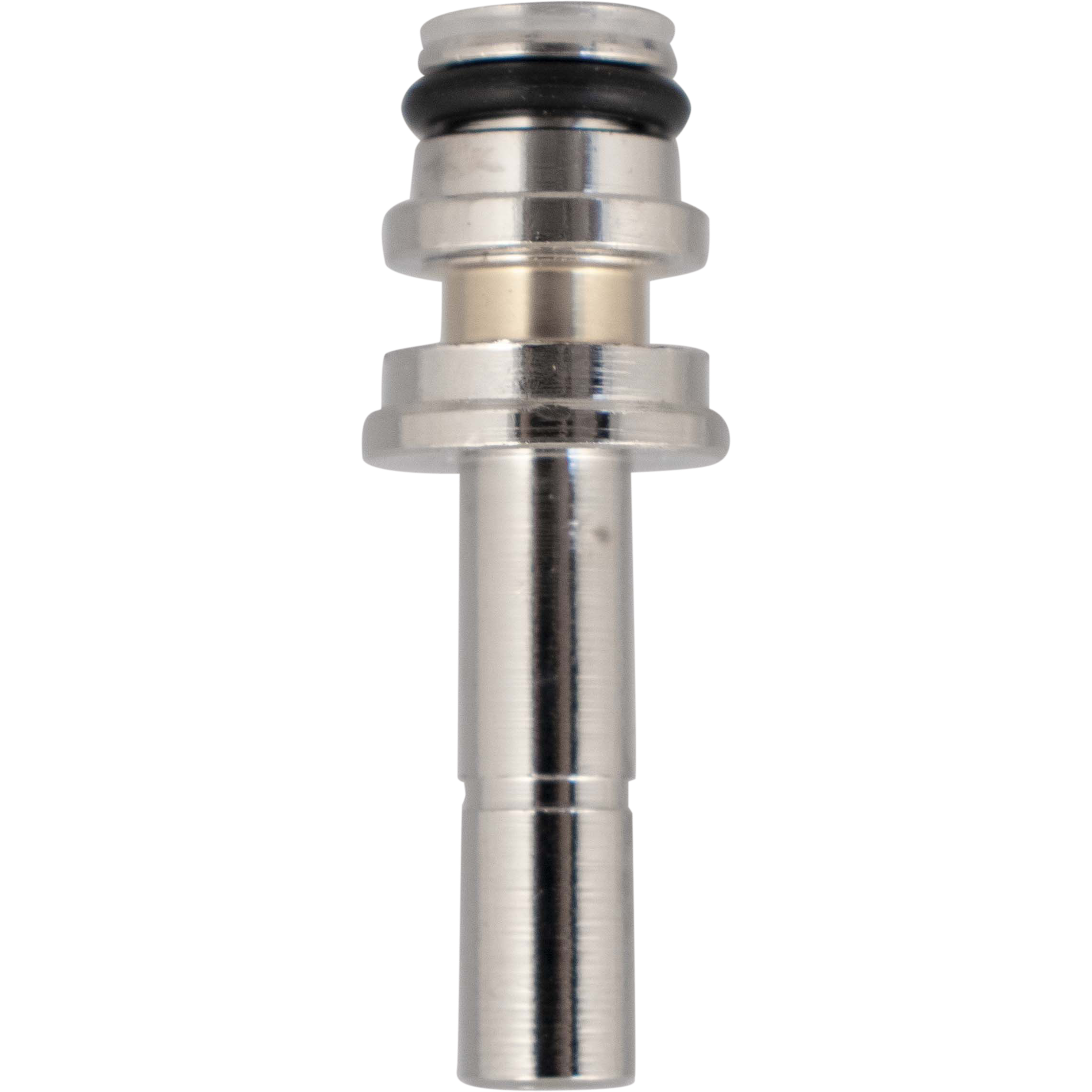 Another feature we haven't seen before on a mini regulator is the interchangeable gas outlet. You can use the swivel nut connection to directly attach the regulator to a flare ball lock disconnect, or you can swap to the 6.5mm Duotight-compatible barb and connect draft tubing. This is a great option if you want to dispense a commercial keg without the need of a ball lock to sanke coupler adapter.