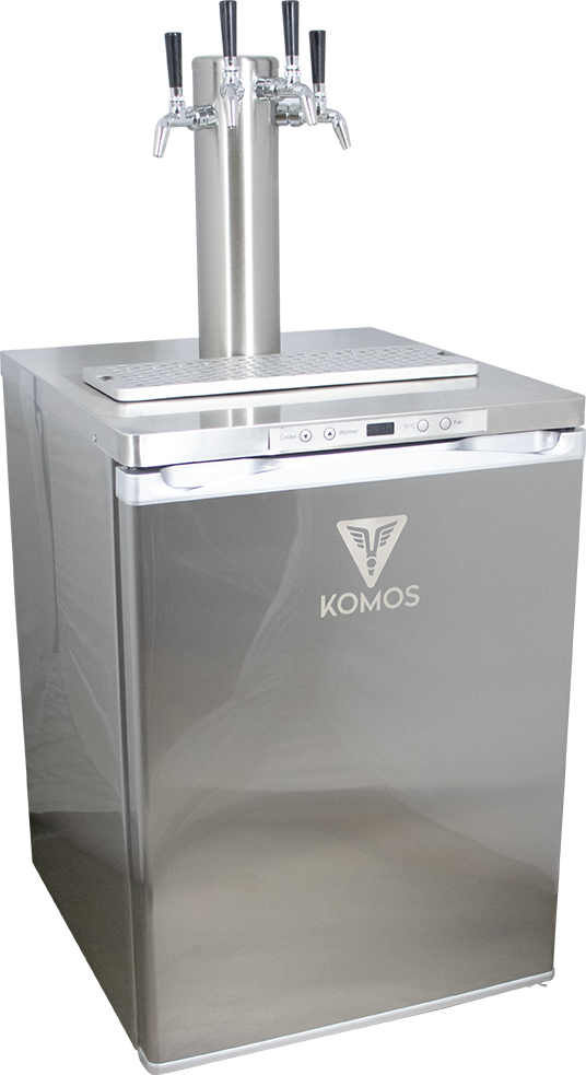 - The KOMOS® Deluxe Kegerator model features an eye-catching stainless steel exterior and upgraded stainless steel drip tray