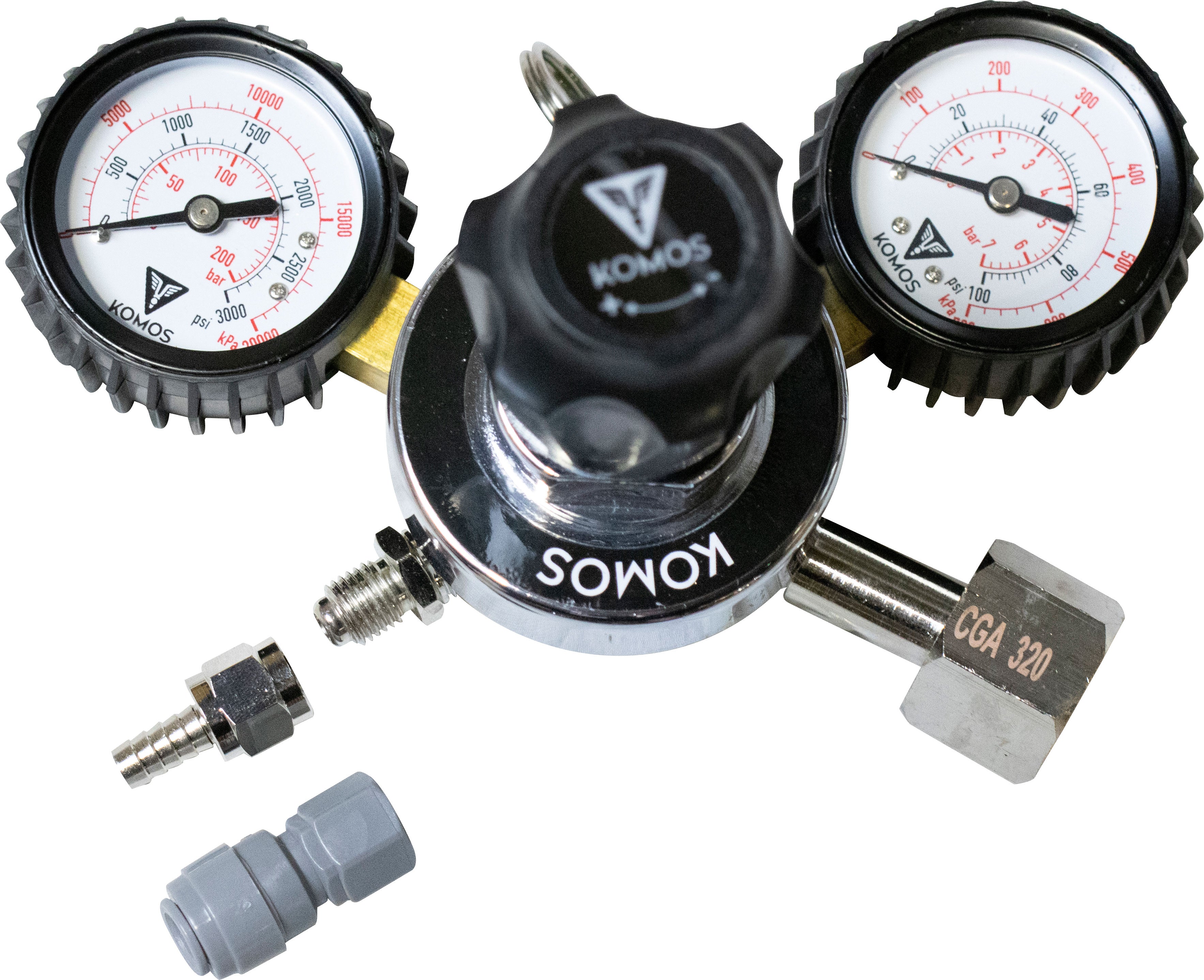 - Included KOMOS Dual Gauge CO2 Regulator maintains consistent pressure and is easily adjusted