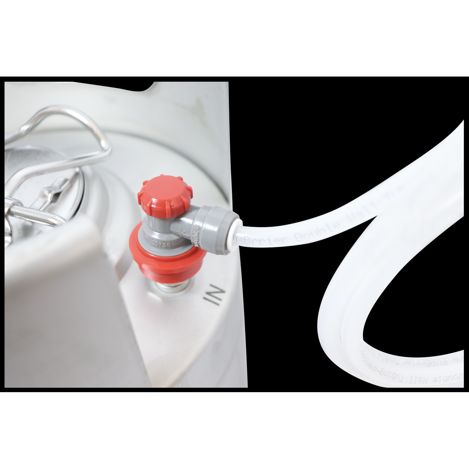 From tank to tap, this kegging kit is made from the highest-quality components, starting with a brand new KOMOS 5 lb CO2 tank and KOMOS Dual Gauge Regulator. Choose from 1.5, 2.5, or 5 gallon Slimline Torpedo Keg. These are the hottest homebrew kegs on the market, featuring stackable base, rolled stainless handles, and labeled In and Out body connects for your QDs. Everything it connected with EVABarrier draft tubing and Duotight push-to-connect fittings. EVABarrier is our draft line of choice due to the double-walled design that protects your beer from oxygen ingress and CO2 loss. Duotight fittings make everything come together quickly and easily—and they're just as easy to disconnect if you need to clean or reconfigure your setup.