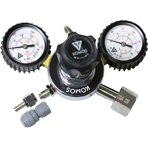 • Included KOMOS Dual Gauge CO2 Regulator maintains consistent pressure and is easily adjusted