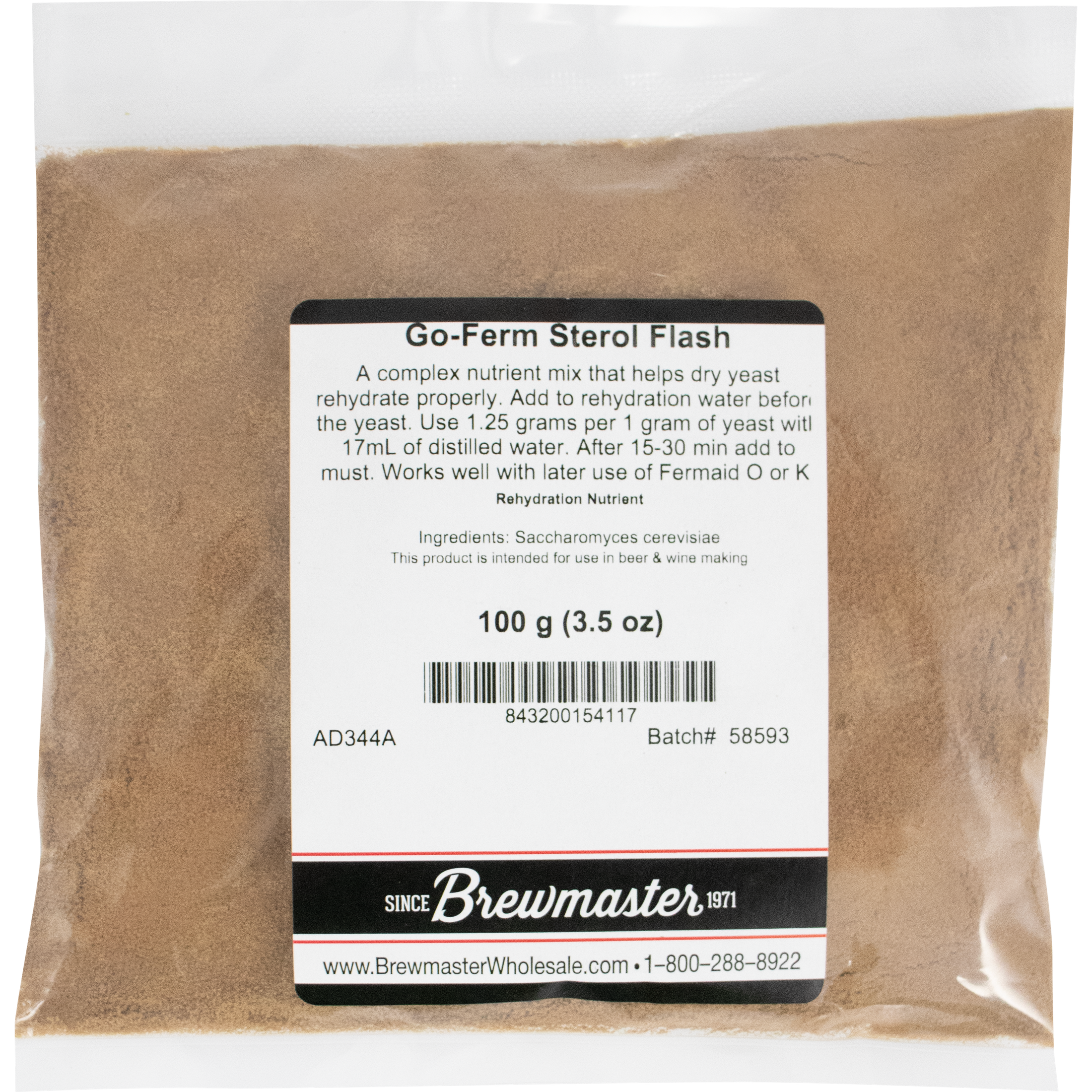 Go-Ferm Sterol Flash™ is a revolutionary new yeast rehydration nutrient that is fast, simple to use, and saves time, labor, and water without compromising on yeast viability and vitality. Derived from autolyzed yeast, Go-Ferm Sterol Flash™ provides optimized levels of micronutrients (vitamins and minerals) and extremely high levels of survival factors including sterols and unsaturated fatty acids.