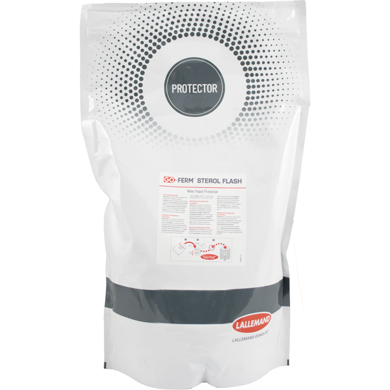 Go-Ferm Sterol Flash™ has the highest bioavailability of sterols and is produced with a specific Lallemand micro agglomerated process, for instant dispersion during the rehydration step. When suspended in cool water, the high content of sterols are quickly released and integrated in the yeast membrane within 15 minutes. The high content of sterols reinforces the permeability and fluidity of the yeast membrane. Go-Ferm Sterol Flash™ increases yeast viability, yeast vitality, and optimizes wine yeast aroma precursors assimilation under any conditions in red, rose, and white wine fermentation. With Go-Ferm Sterol Flash™, no yeast acclimatization steps are required before inoculation in must. Go-Ferm Sterol Flash™ is a revolutionary yeast rehydration protector with instant dispersion in cool water for a more reliable alcoholic fermentation and wine yeast sensory impact.