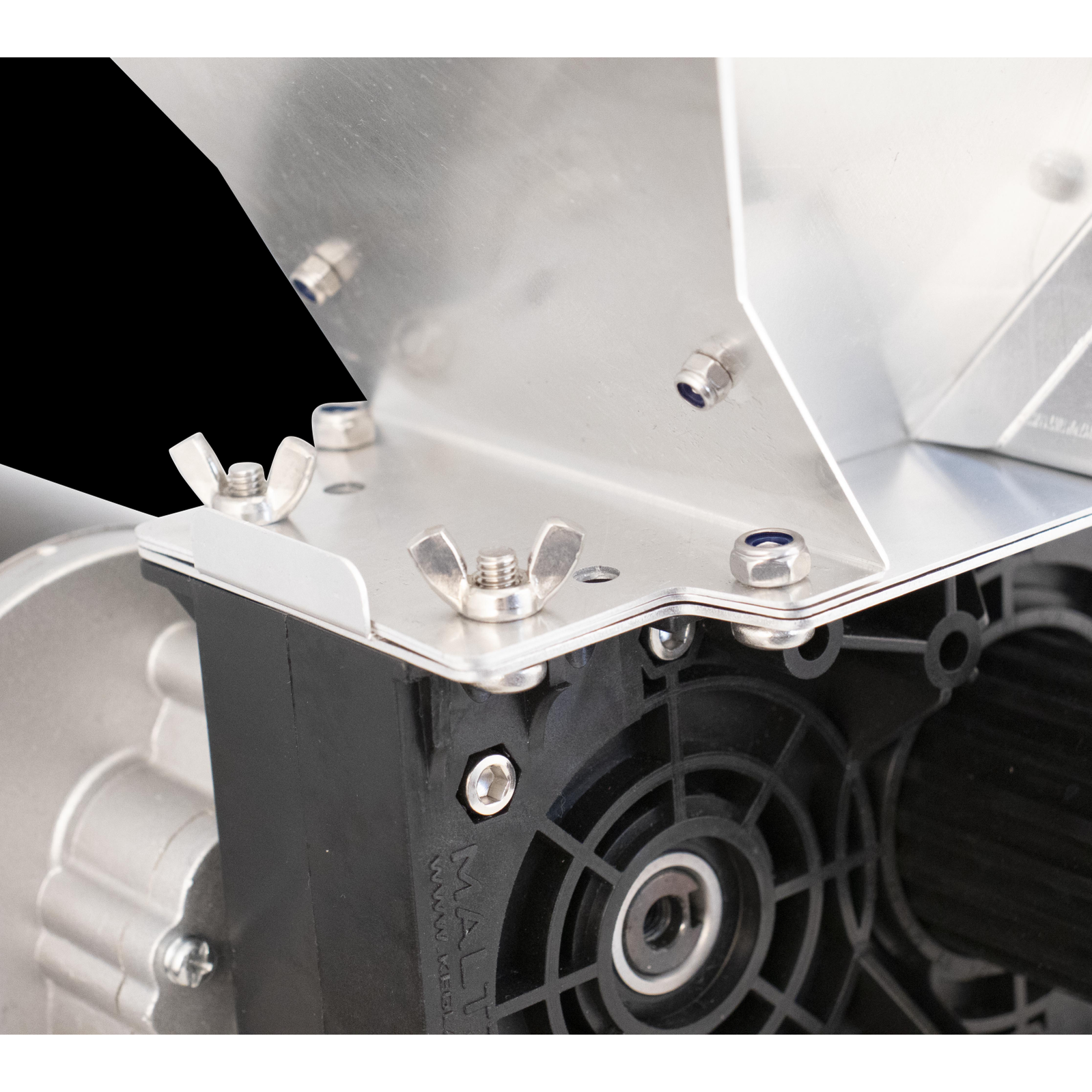 You generally would not purchase a car without an engine, so why would you purchase a grain mill without a motor? Milling grain has an optimum RPM— too slow and it will take you a long time, too fast and you will end up with excessive powder. Hand cranking can be a pain in the backside, especially with larger grain bills, and using a power drill doesn't offer much in the way of speed control and adds the potential risk of burning out your drill. The MaltZilla has an integrated motor with a very constant RPM putting out optimum RPM with an integrated gearbox. The high torque and sealed construction make it ideal for a brewing environment, as the motor is well protected from moisture and grain dust.