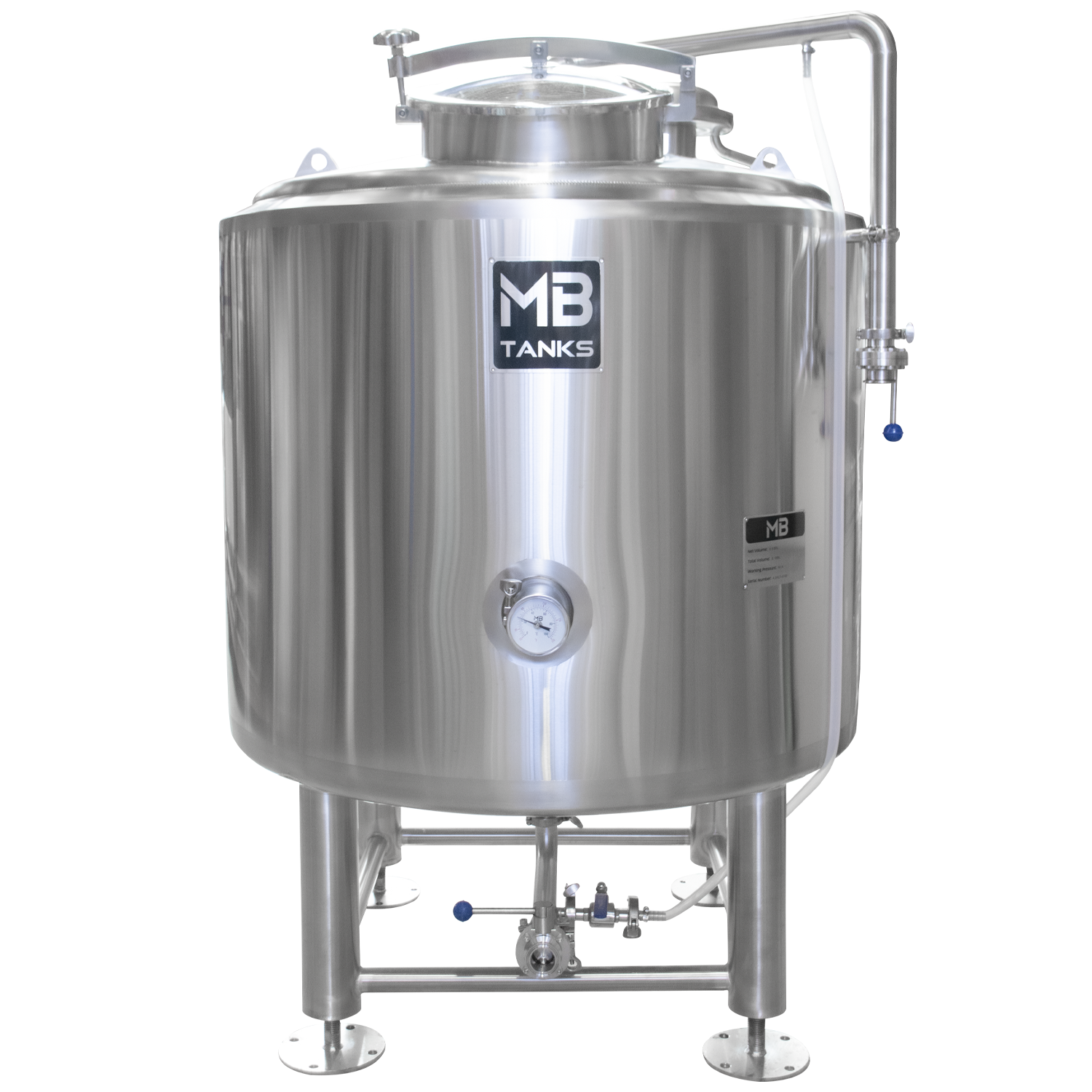Oversized HLT large enough for mashing and sparging without needing to top off. Features sight gauge and tapered bottom with center drain