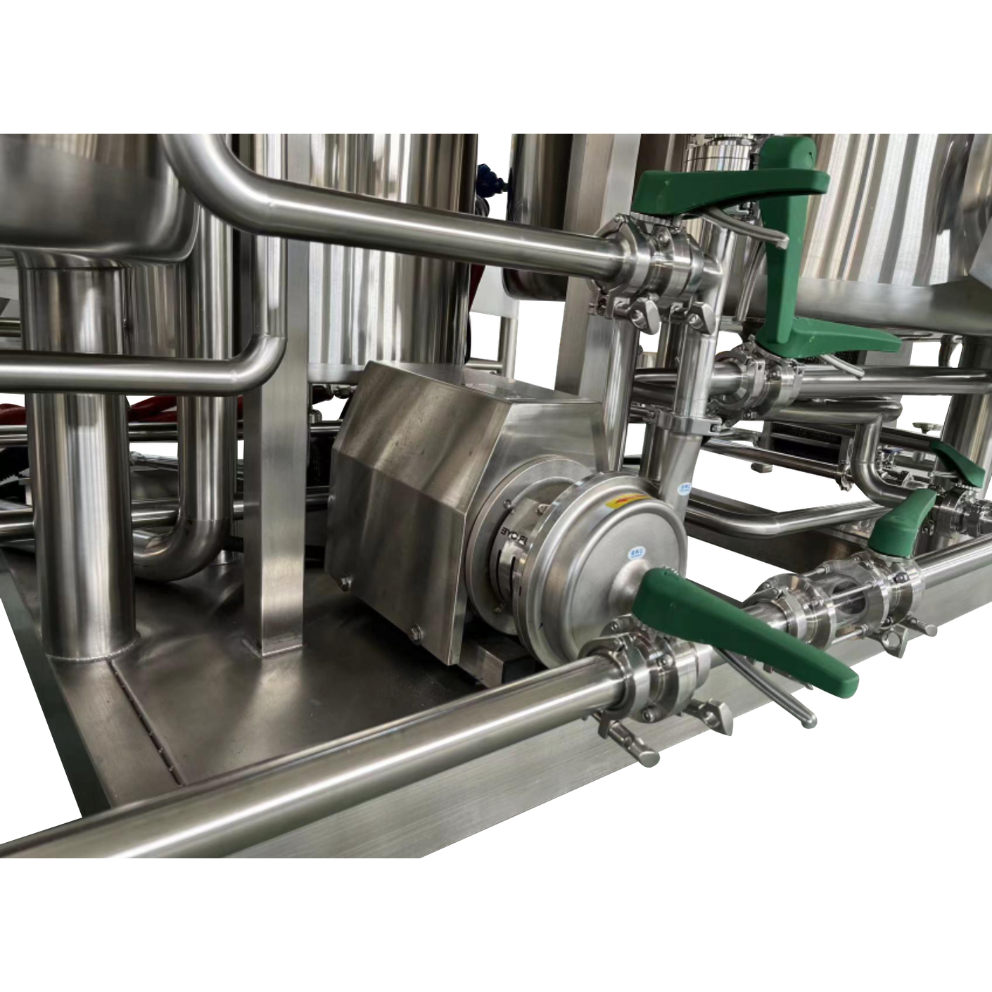 Compared to the traditional steam heating brewhouse, the creative new-tech thermal oil heating avoids the installation of a dangerous and high-maintenance steam boiler. Steam offers more surface area than gas fired, but it requires a generator to create steam, collect it, and reheat it again. Oil heated brewhouses, on the other hand, use a simple oil heater and pump to circulate oil through the tank jackets. Compared to gas fired systems where all heat is directed to the very bottom of the kettle, this system heats from the sides and the bottom rather than the bottom alone. This offers not only greater surface area but faster thermal response. By controlling the oil temperature, you also have more precise boil vigor control and evaporation rate control. For these reasons and more, the Oil Heated Brewhouse makes for an ideal pilot batch system.