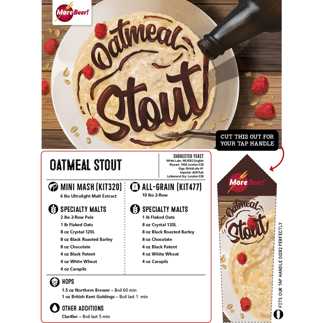 Our Oatmeal Stout is loaded to the brim with malt! A helping of Flaked Oats give this brew a smooth, almost slick, mouthfeel, while three different dark malts—Chocolate, Black Patent, and Roasted Barlery—combine for a very complex roast flavor. A lower bittering rate from a moddest hop addition allows the flavor emphasis to rest squarely on the synergy of maltiness, dark roasted malts, and oat flavor. Oatmeal Stout is one of our most consistently well-reviewed kits and comes highly recommended for anyone who appreciates a dark, roasty beer.