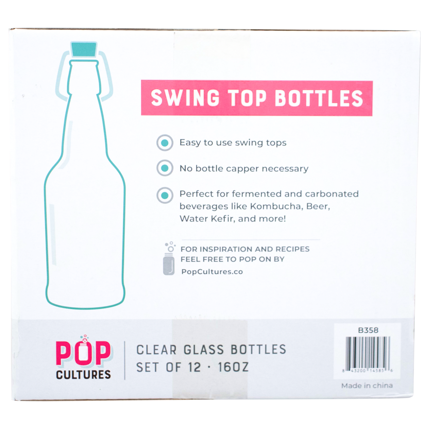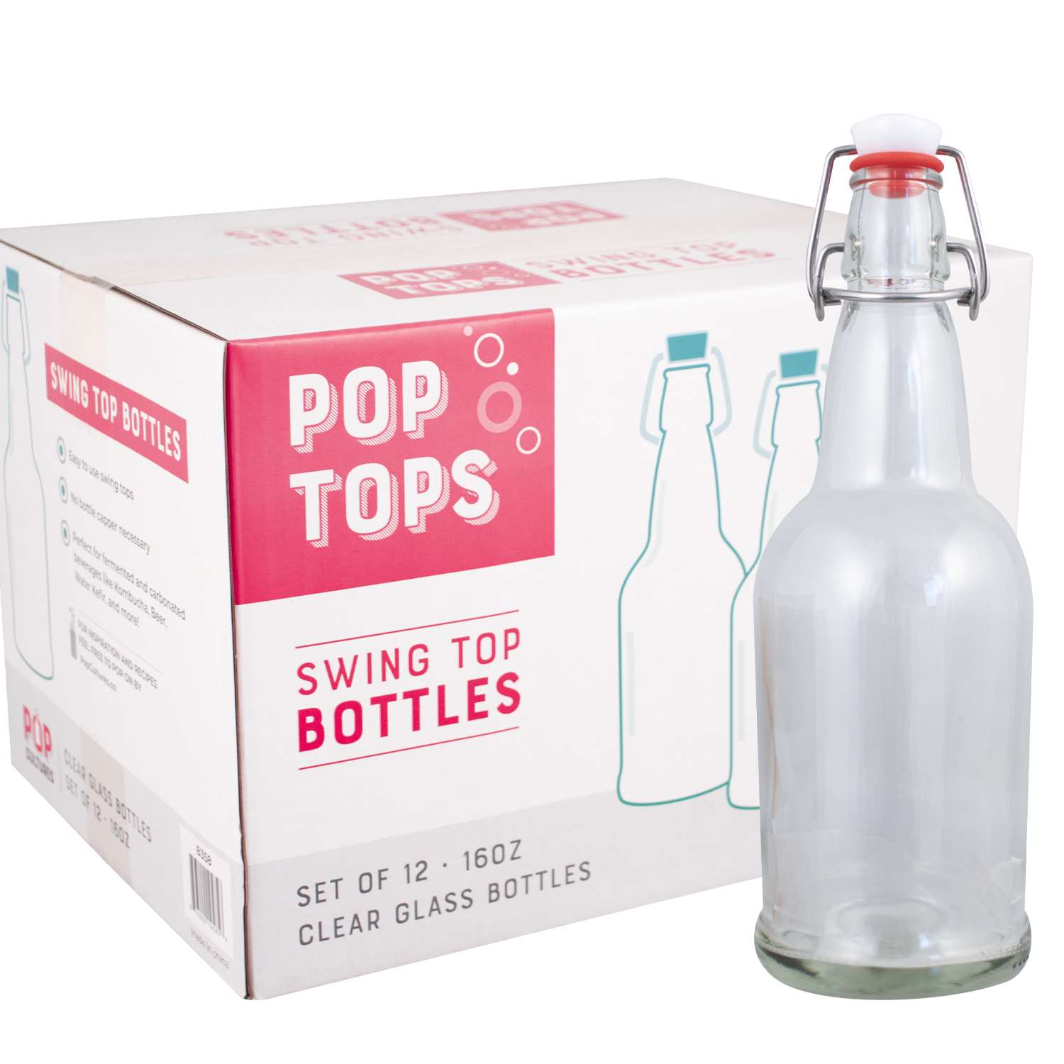 Case of 12 x 16 oz Clear Pop Tops Bottles with Swing Tops. Crown Caps not included (see recommended items below for options).