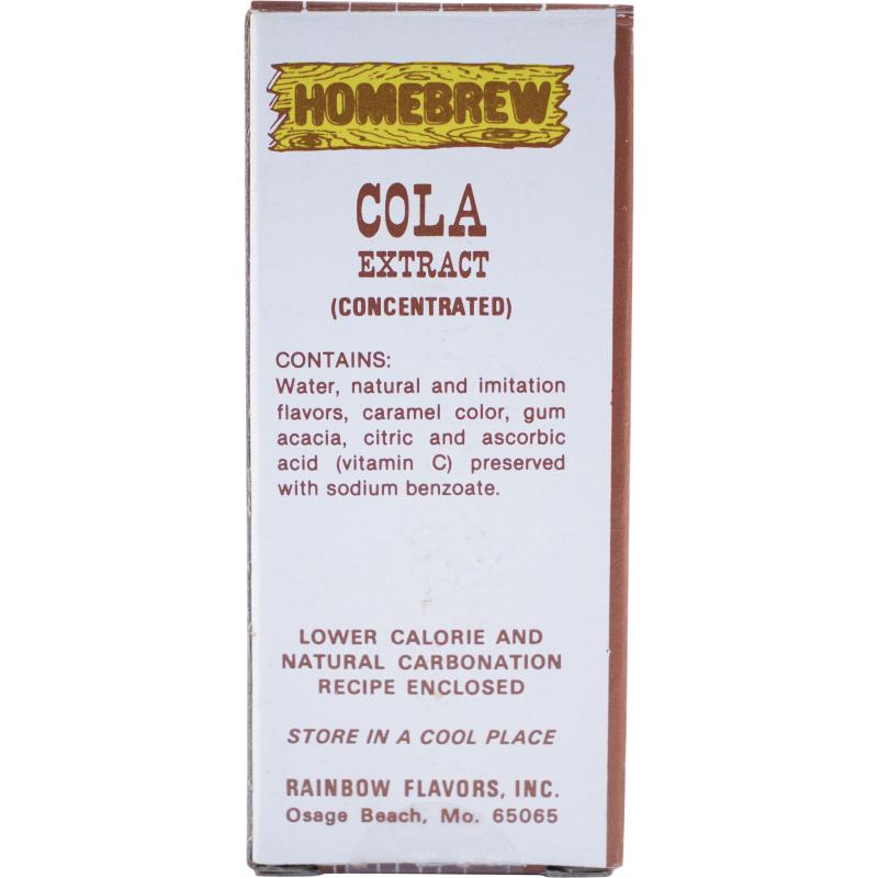 Cola extract from Rainbow Flavors. Concentrated flavor extract for making your own sodas. Mix with water and sugar, then either carbonate by bottle conditioning with yeast, or force carbonate in a keg.