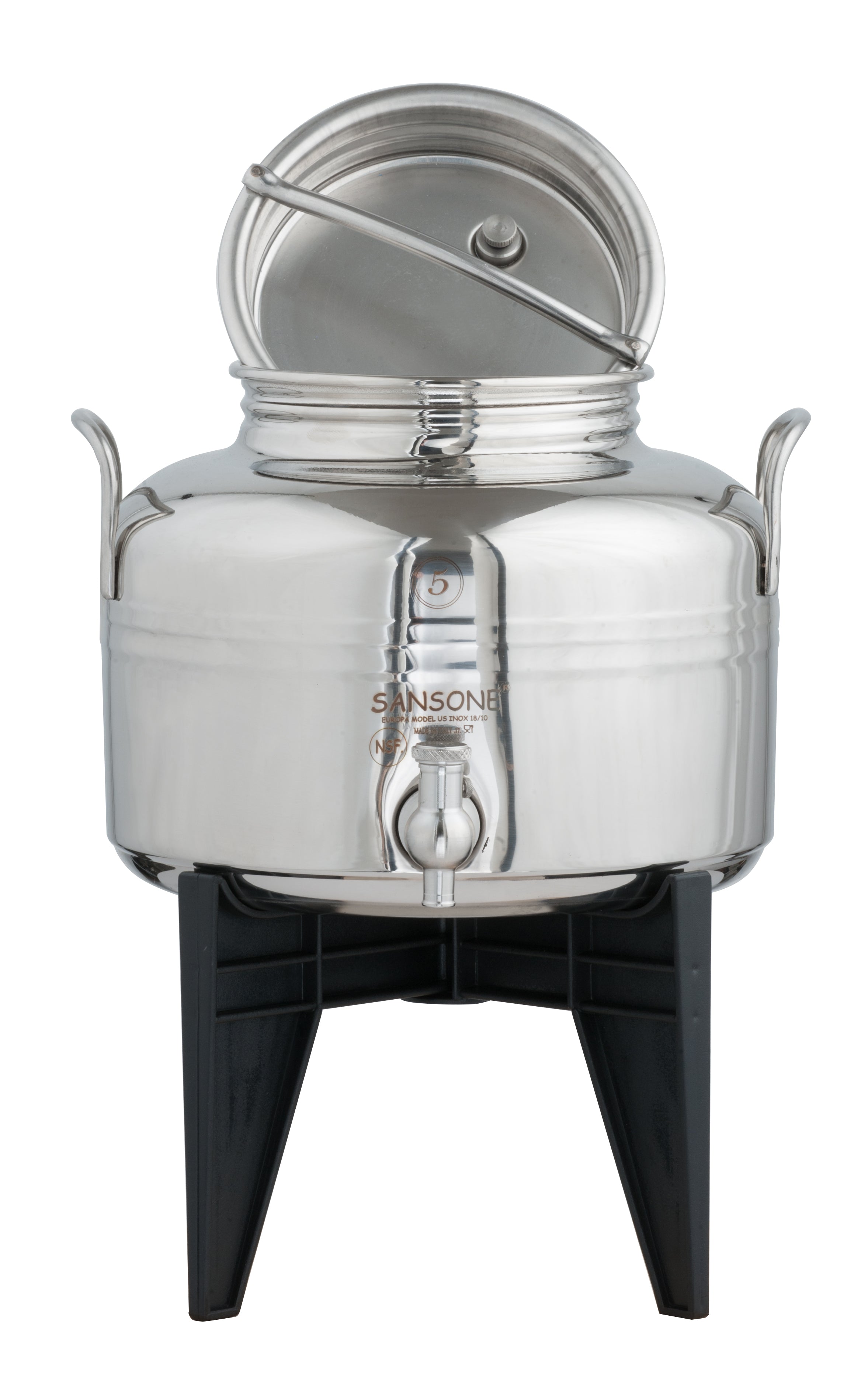 - Sansone Fusti tanks are crafted from high-quality stainless steel with welded handles for long-lasting performance and easy transport