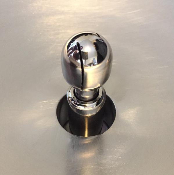 This clean in place spray ball from Ss Brewtech attaches to a 1.5" tri clamp to clean the inside of whatever container you attach it to. Has a 1/2" MPT and made from 304 stainless steel. The attachment is 2.5 in. long and 0.75 in. wide.