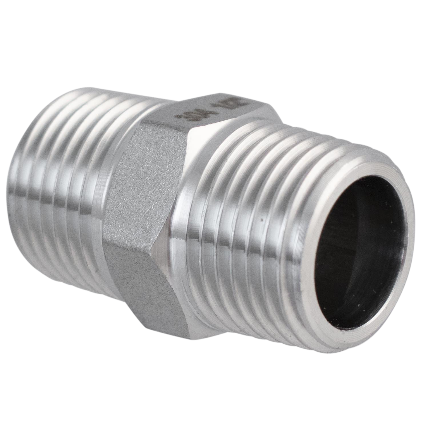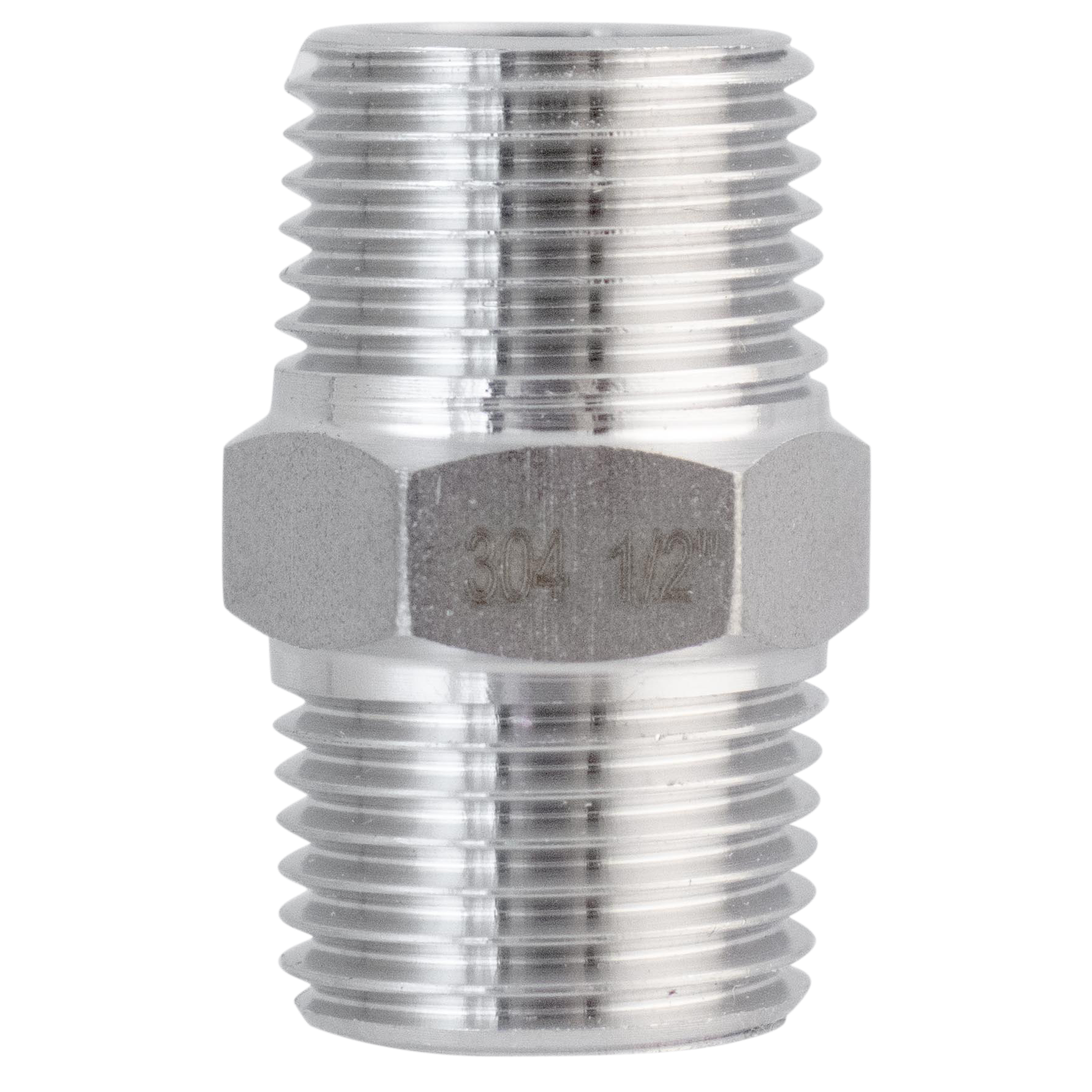 An excellent upgrade to a standard nipple, these have a hex nut in the center to allow easy tightening and loosening in whatever application it's used! 1/2" male BSP threads.