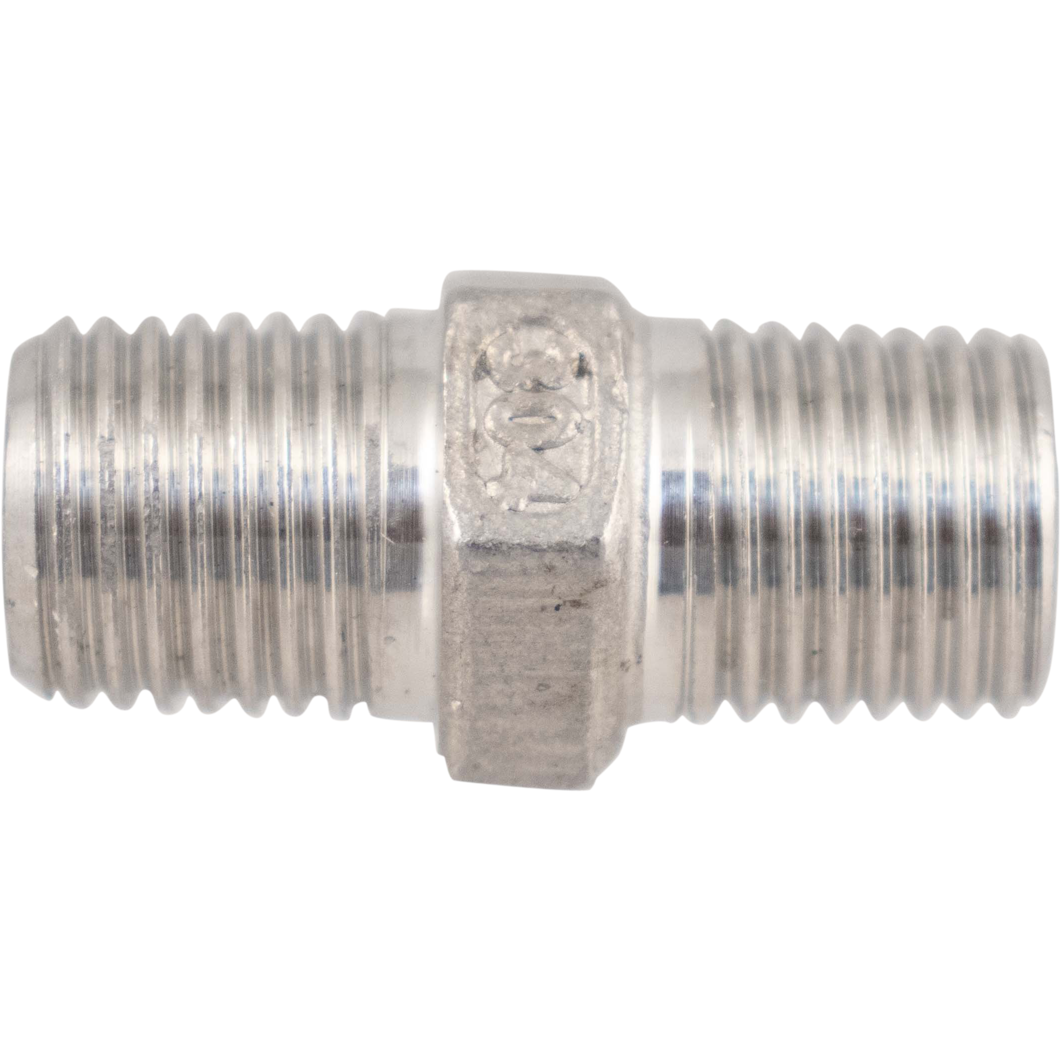 An excellent upgrade to a standard nipple, these have a hex nut in the center to allow easy tightening and loosening in whatever application it's used! 1/4" male BSP threads.