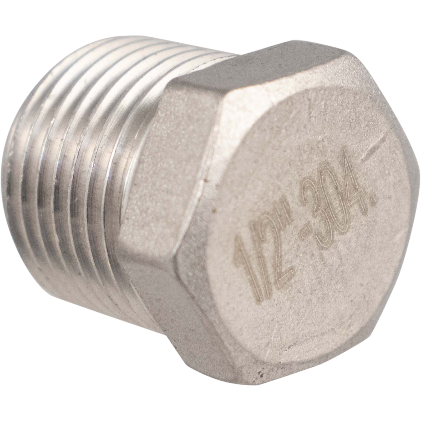 1/2" male BSPP stainless steel plug. Hex head design for easy installation or removal with a wrench.