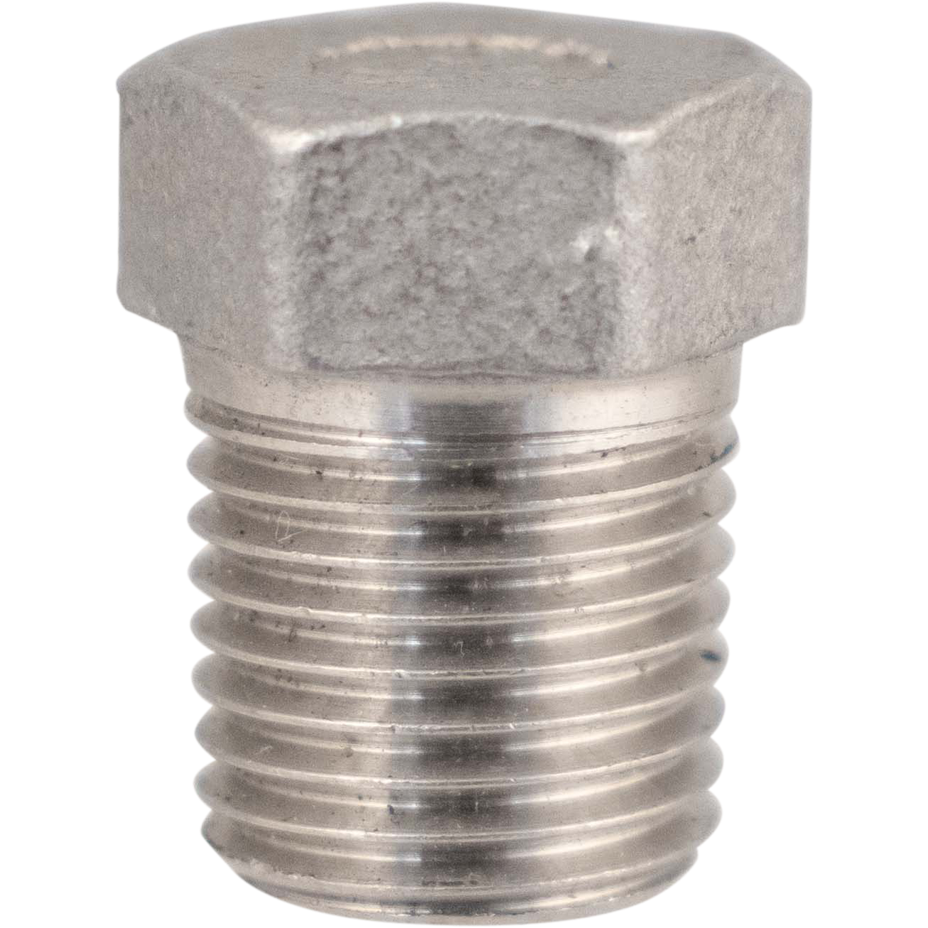 1/4" male BSPP stainless steel plug. Hex head design for easy installation or removal with a wrench.