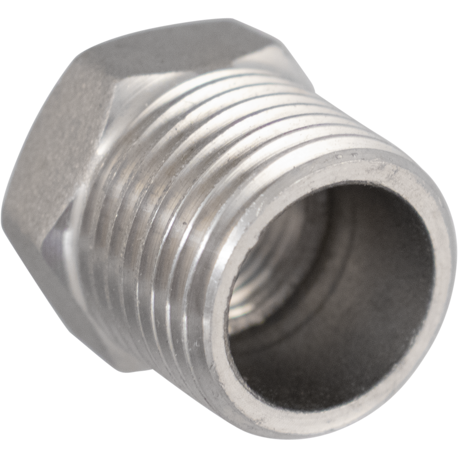 Stainless steel reducing bush. 1/2" BSP x 1/4" BSP. Made from stainless steel.