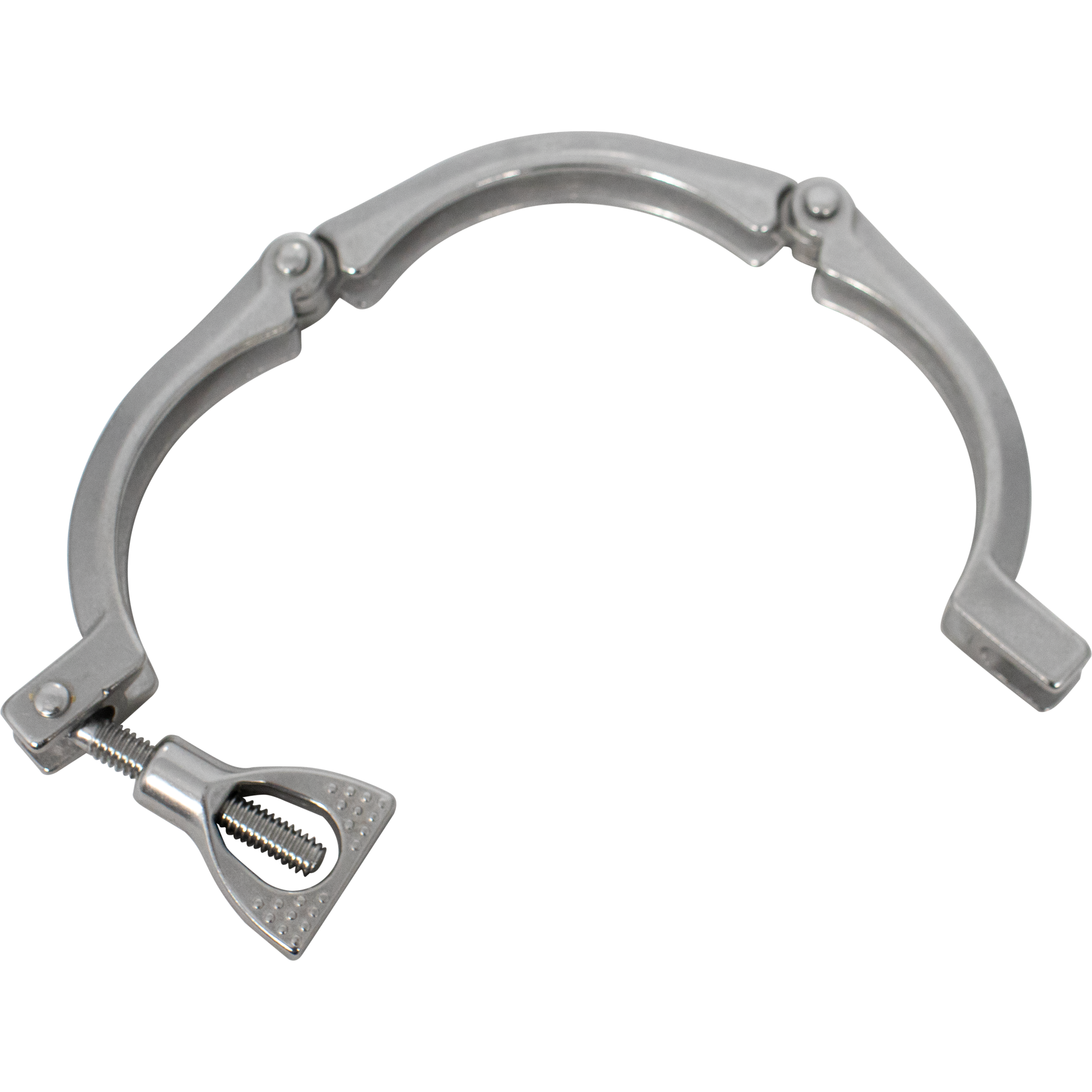 This stainless steel tri-clamp features two hinges and folds into three pieces. Some brewers find this style of clamp easier to work with on large equipment that requires a 3" clamp. Direct replacement part to the clamp included on the FermZilla Tri-Conical fermenter.