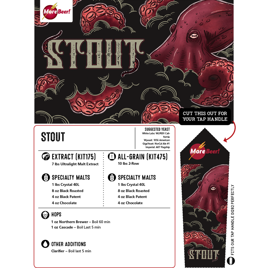 Very similar to our Porter, but includes Roasted Barley and a higher hopping rate for that true, coffee-like, burnt-Stout flavor. This is a micro-brewery-style Dry Stout with a pretty good dose of bitterness. Full, crisp flavor, black color, and a nice, dry finish.