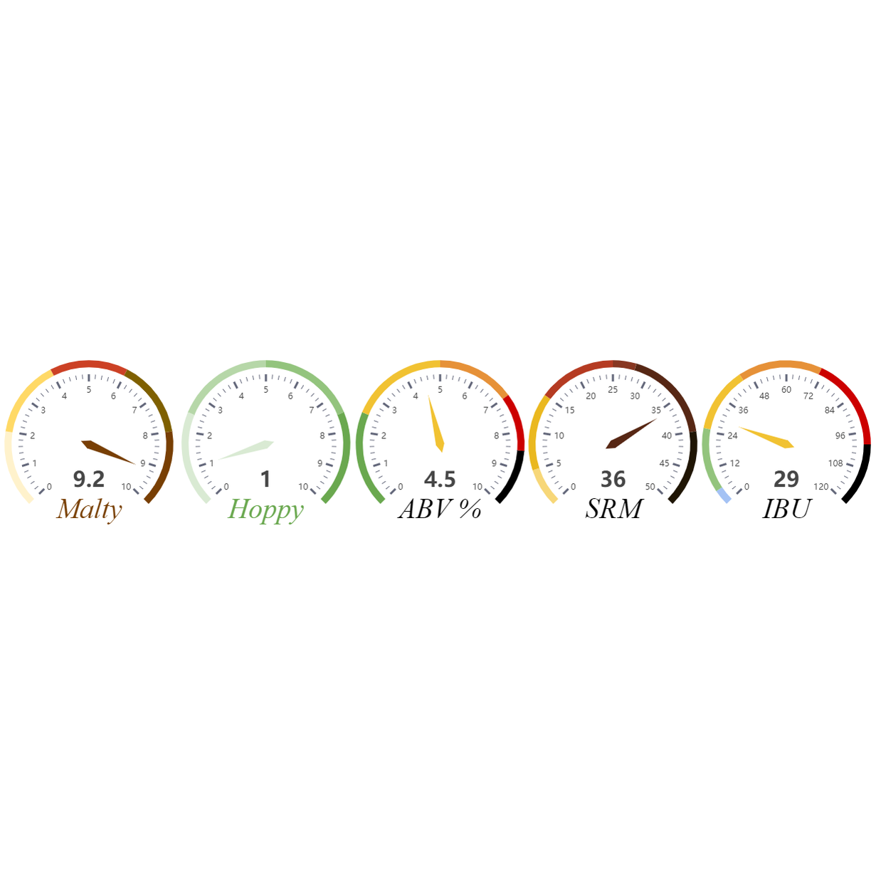 Full, crisp flavor, black color, and a nice, dry finish. Similar to our Porter recipe but with Roasted Barley