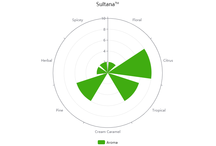 Sultana™, AKA Experimental Variety 06277/ Denali™, is a new hop bursting with flavor. Called Nuggetzilla by some, this hop is rich in pineapple, citrus, and pine flavors, though it can often come off as spicy as well. It can be used for bittering, flavor, or aroma, and is sure to make an impact! These have rich characteristics that make for an unmistakeable beer. Try it in your next pale ale or IPA, sit back, and enjoy the results.
