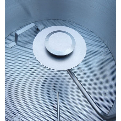 A single, large diameter outlet port trickles onto a stainless disc, which distributes sparge water gently and evenly. This port is also much easier to flush out and keep clean than many other sparge assemblies with multiple small holes that grain gets stuck in during recirculation