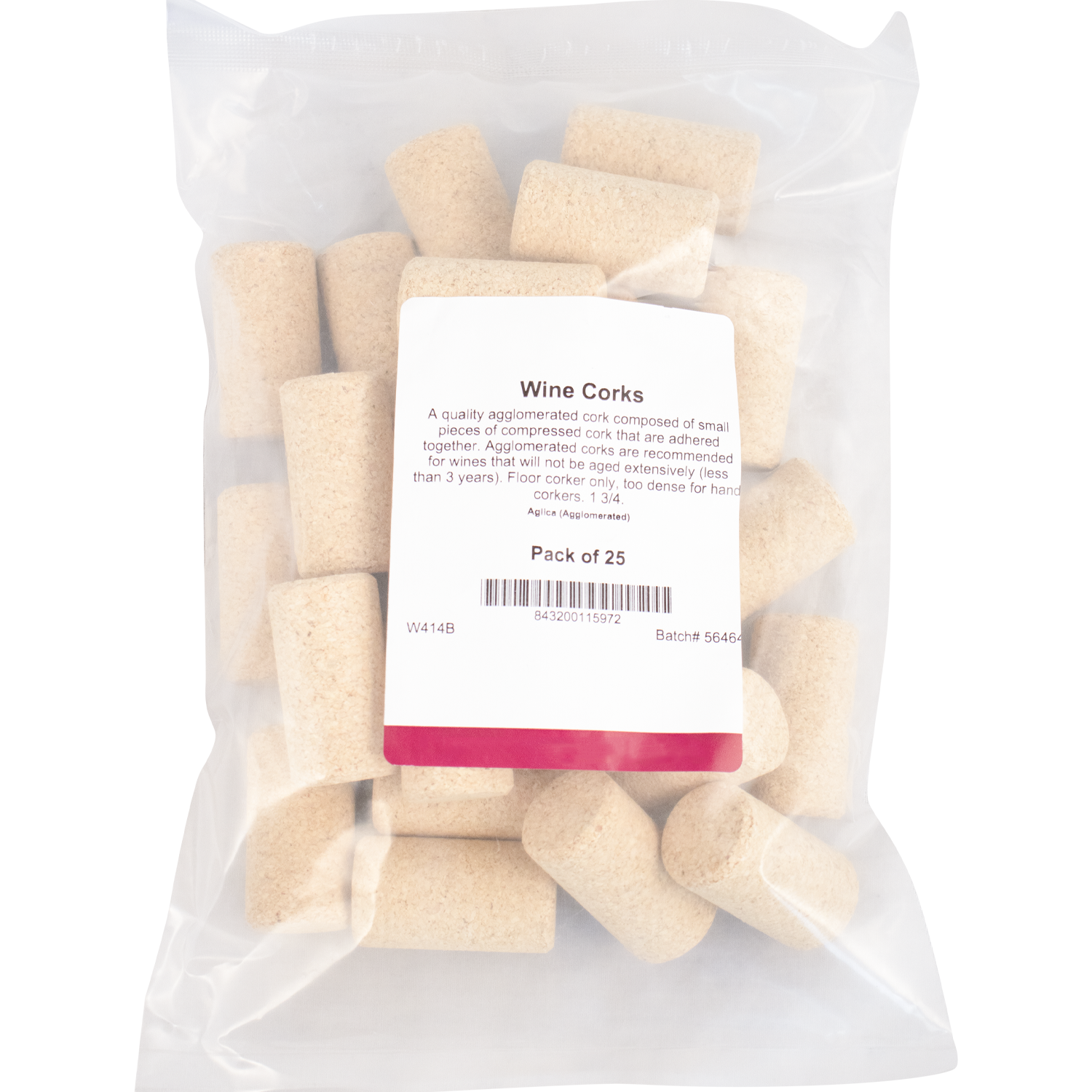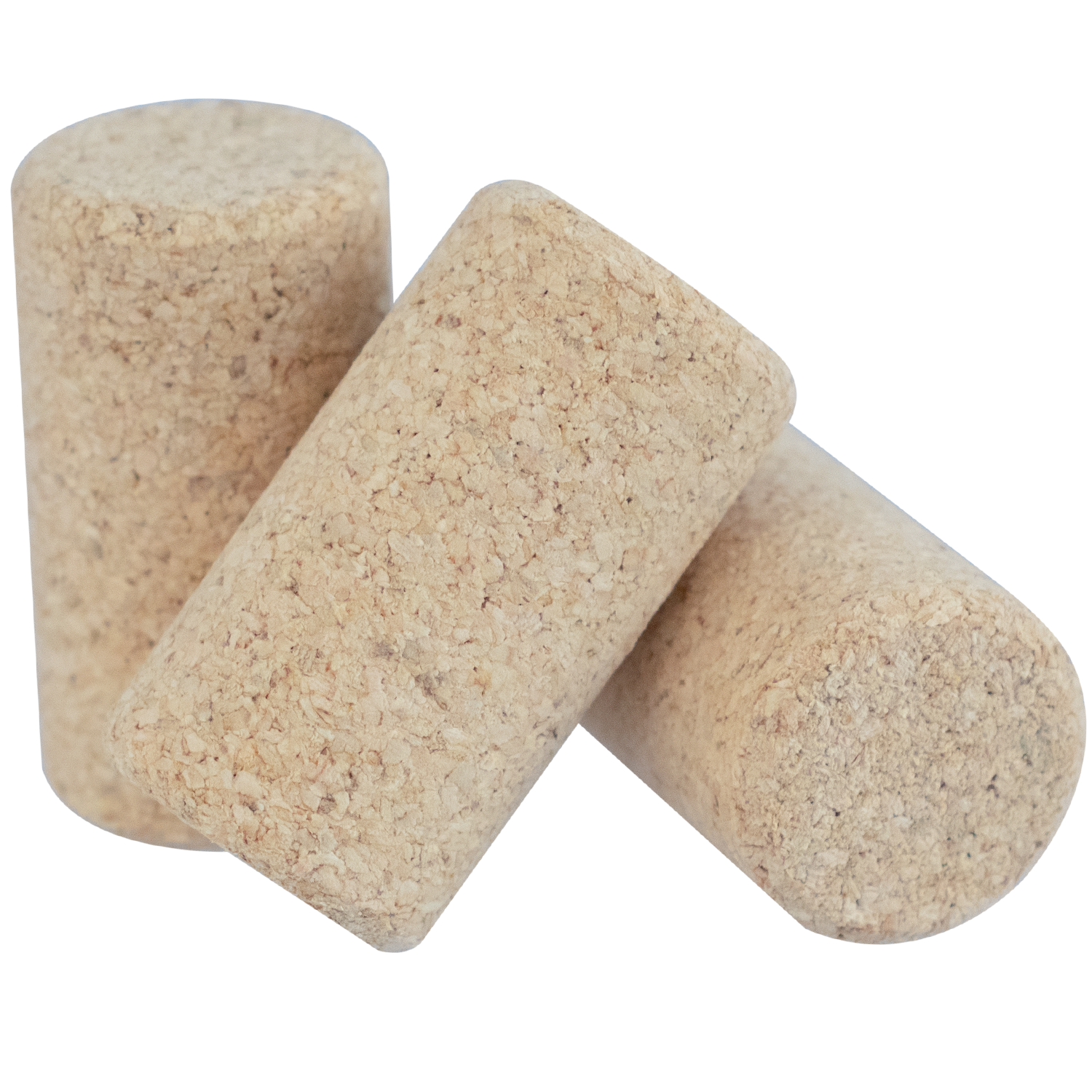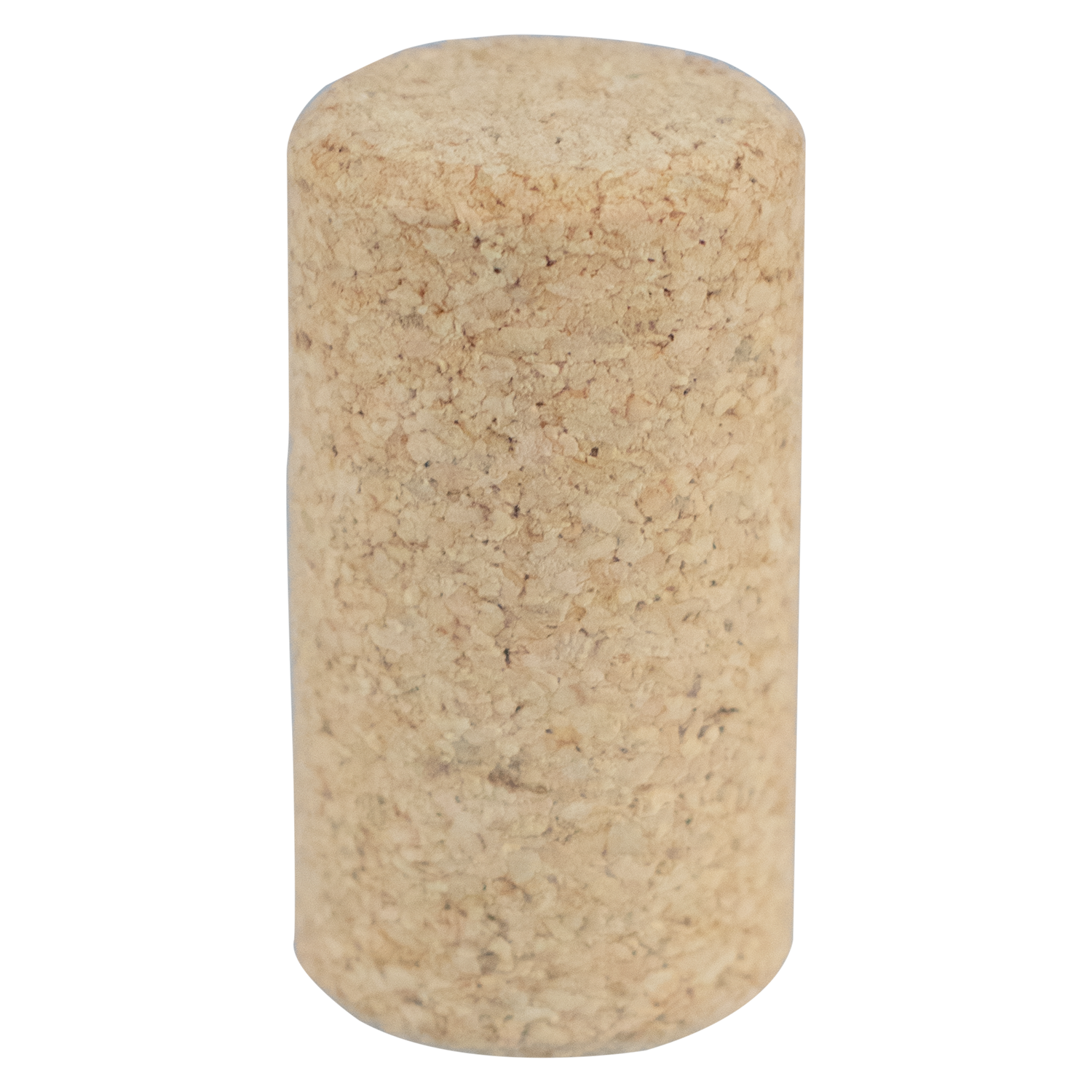 An agglomerated cork that offers a great seal using compressed pieces of small cork. Fantastic value. Because they do not compress as easy as natural corks, you will need a floor corker, as opposed to a handcorker, to push these into the bottles.